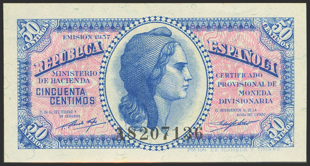 50 Céntimos. 1937. Ministerio de Hacienda. Serie A. (Edifil 2023: 391). Apresto original. SC.