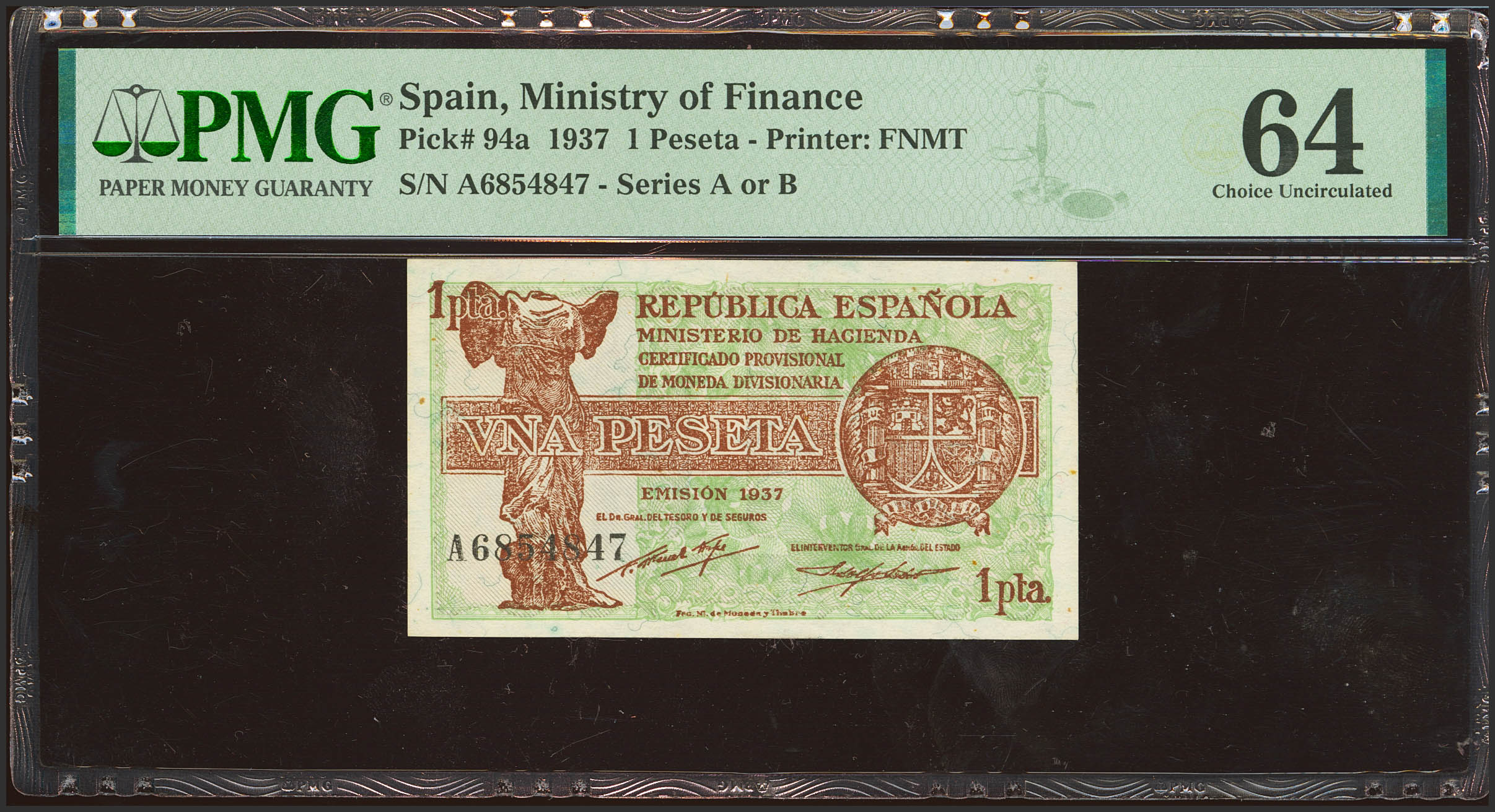 1 Peseta. 1937. Serie A. (Edifil 2023: 392, Pick: 94a). SC. Encapsulado PMG64.