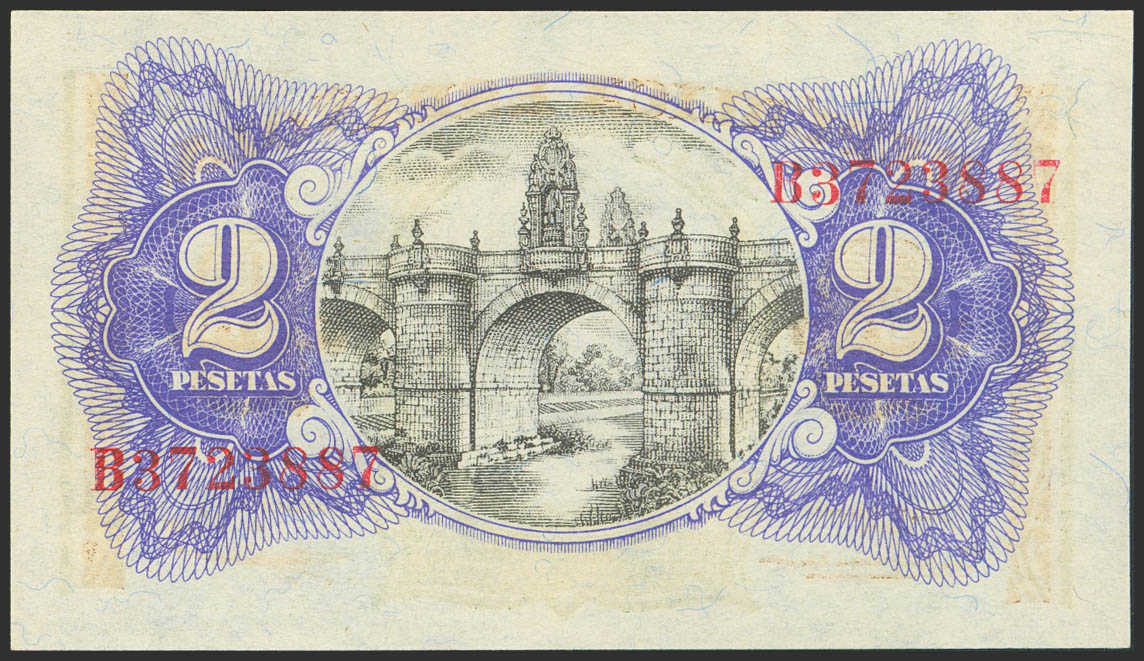 2 Pesetas. 1937. Ministerio de Hacienda. Serie B. (Edifil 2023: 393). Apresto original. SC.