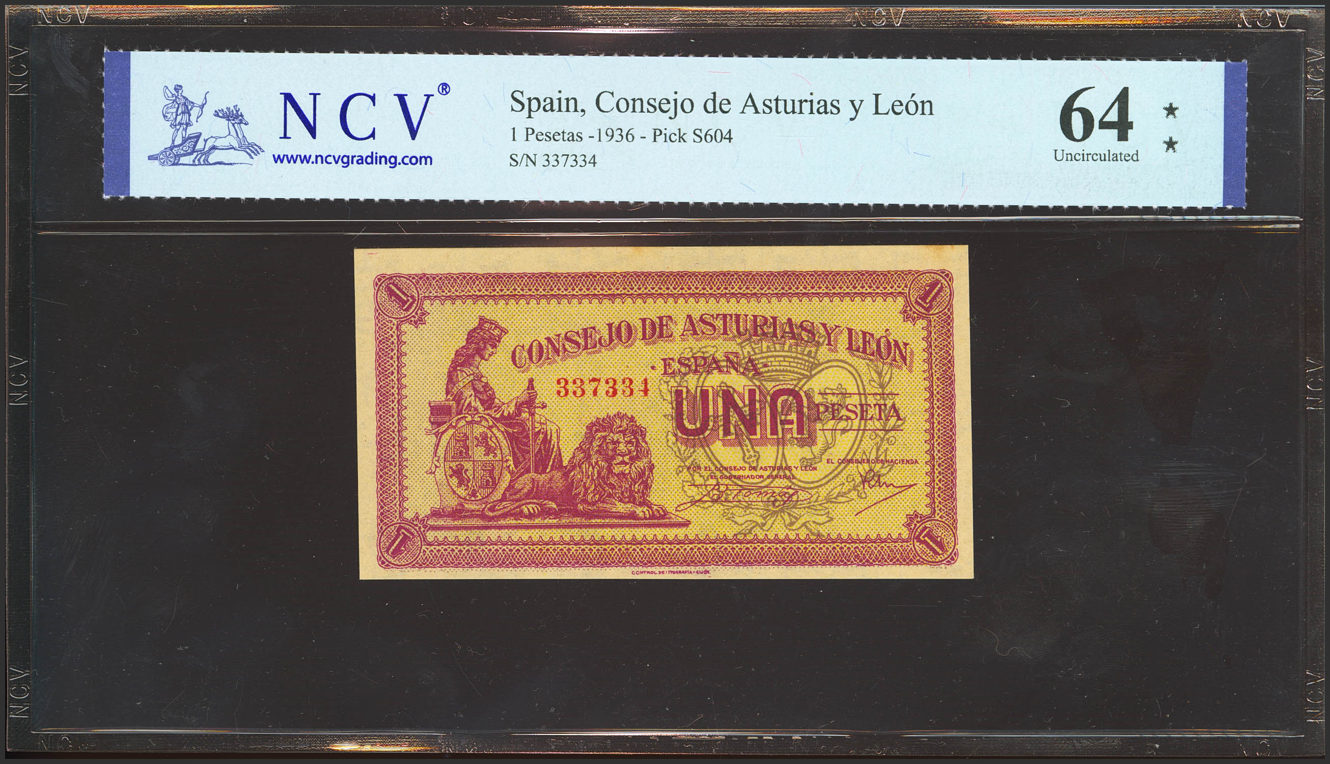 1 Peseta. 1937. Asturias y León. Sin serie. (Edifil 2023: 397, Pick: S604). SC. Encapsulado NCV64.