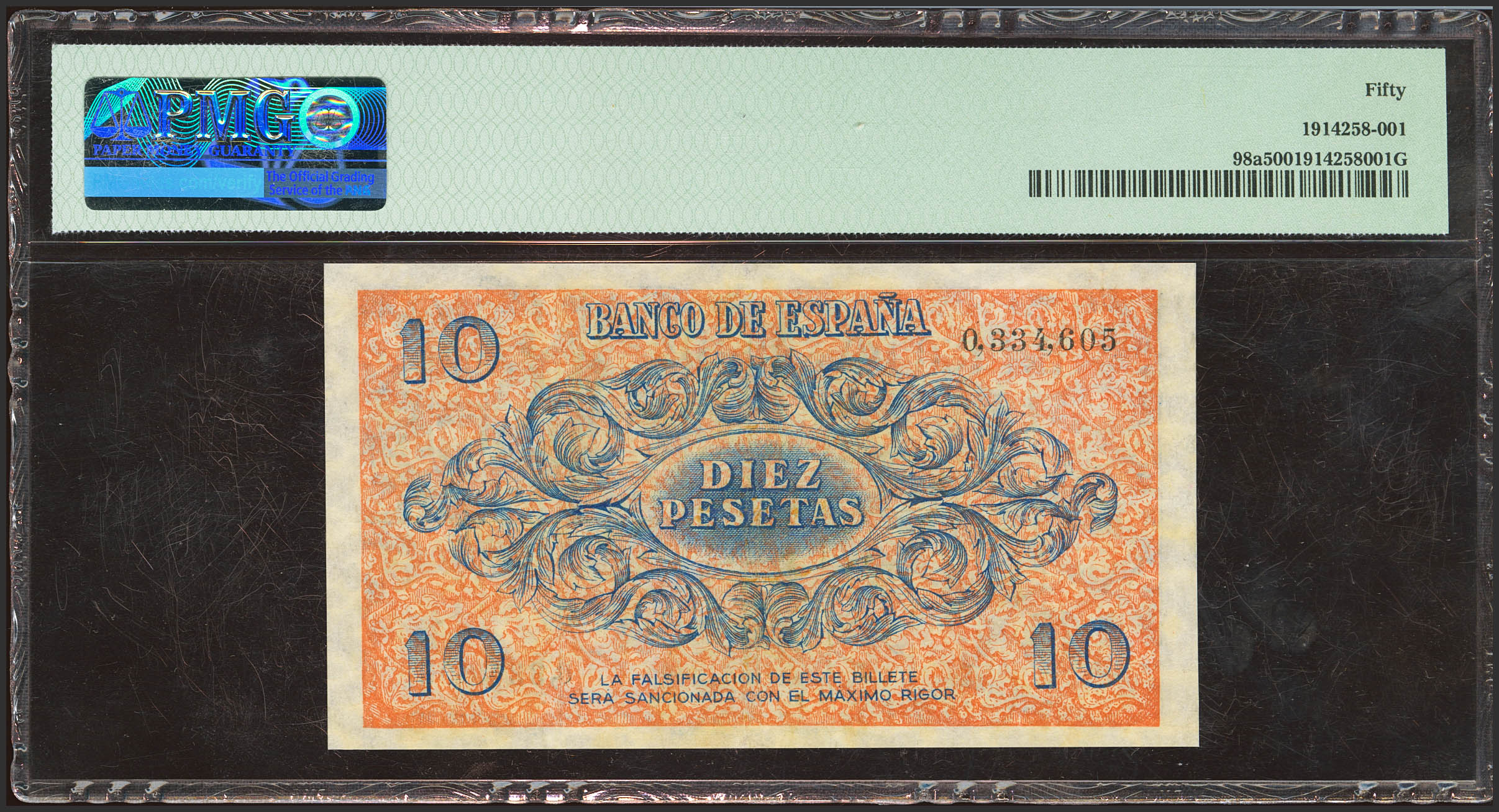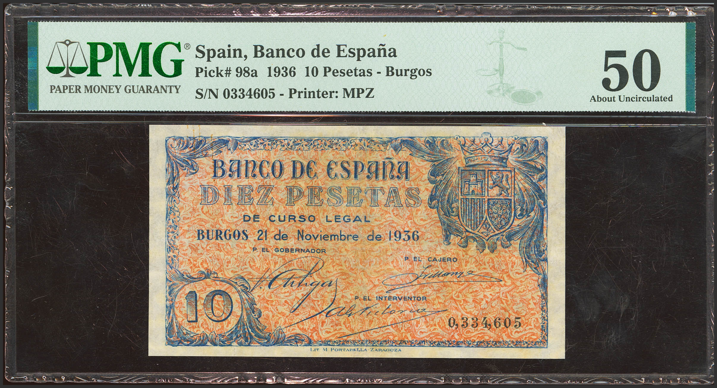 10 Pesetas. 21 de Noviembre de 1936. Sin serie. (Edifil 2023: 418). Raro en esta calidad. EBC. Encapsulado PMG50.