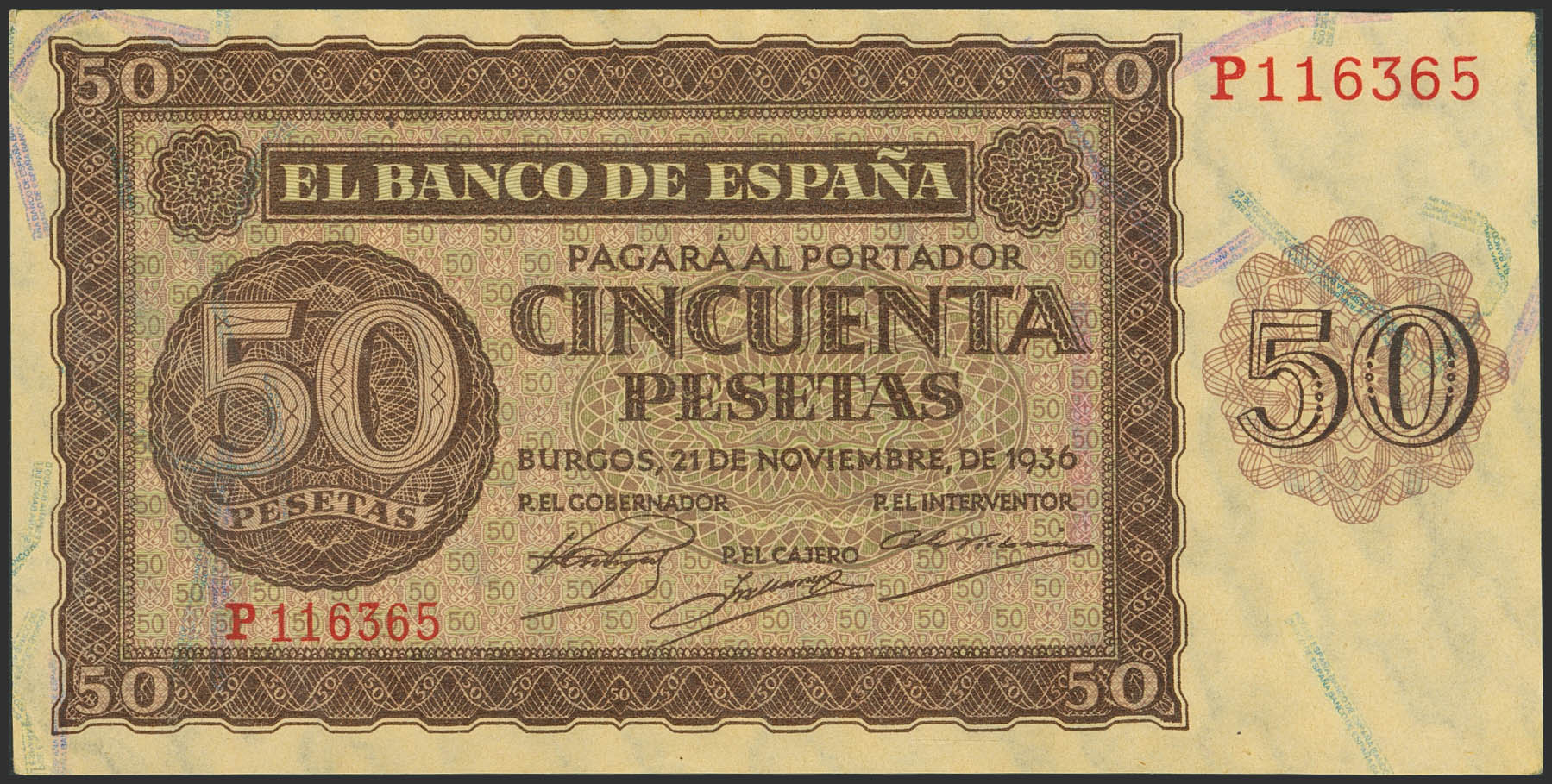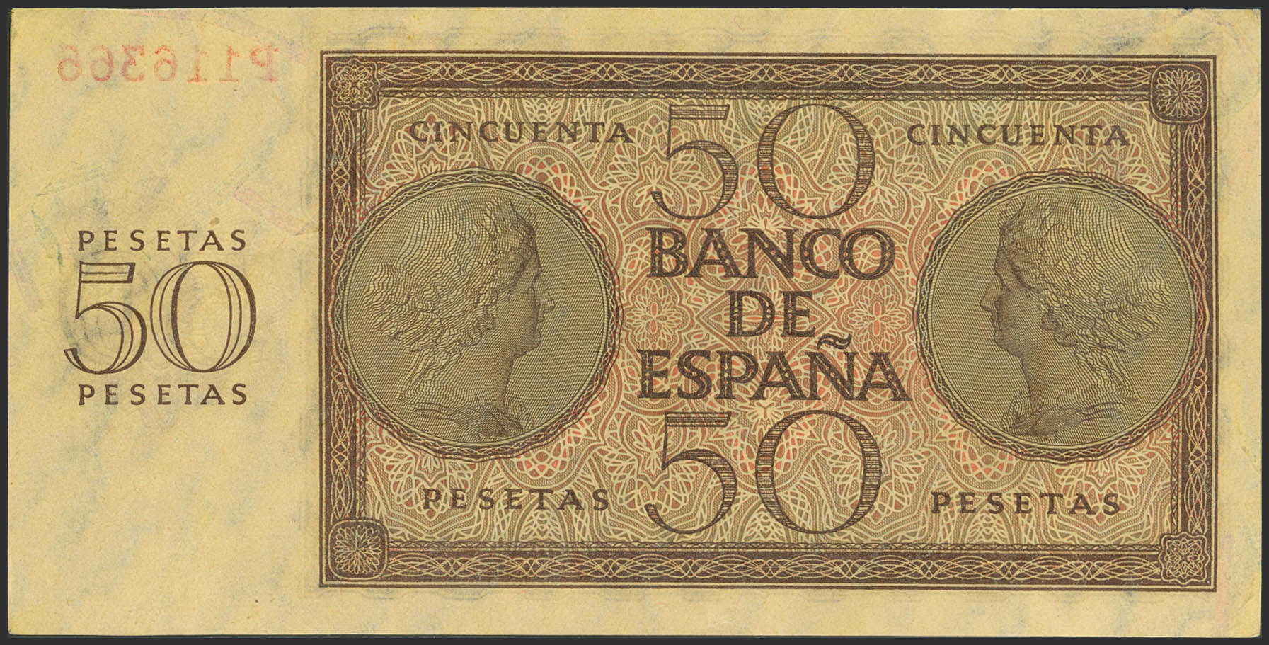 50 Pesetas. 21 de Noviembre de 1936. Serie P. (Edifil 2023: 420a). Apresto original. EBC+++.