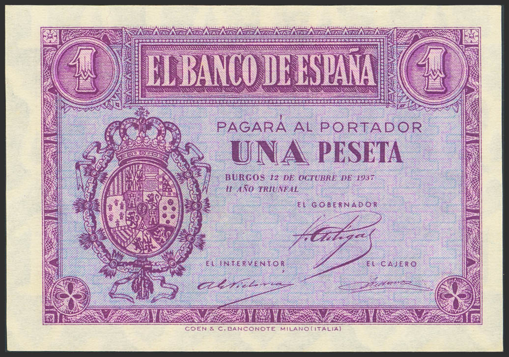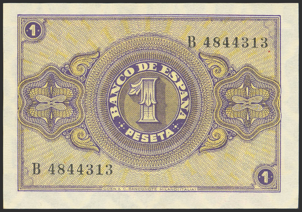1 Peseta. 12 de Octubre de 1937. Serie B. (Edifil 2023: 425a). Apresto original. SC-.