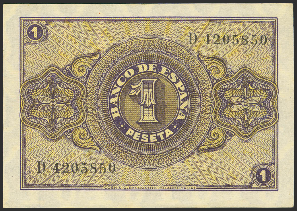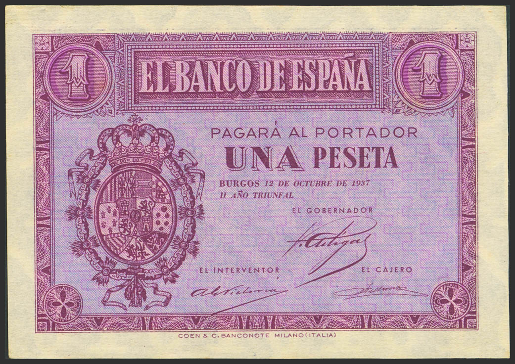 1 Peseta. 12 de Octubre de 1937. Serie D. (Edifil 2023: 425a). Apresto original. SC.