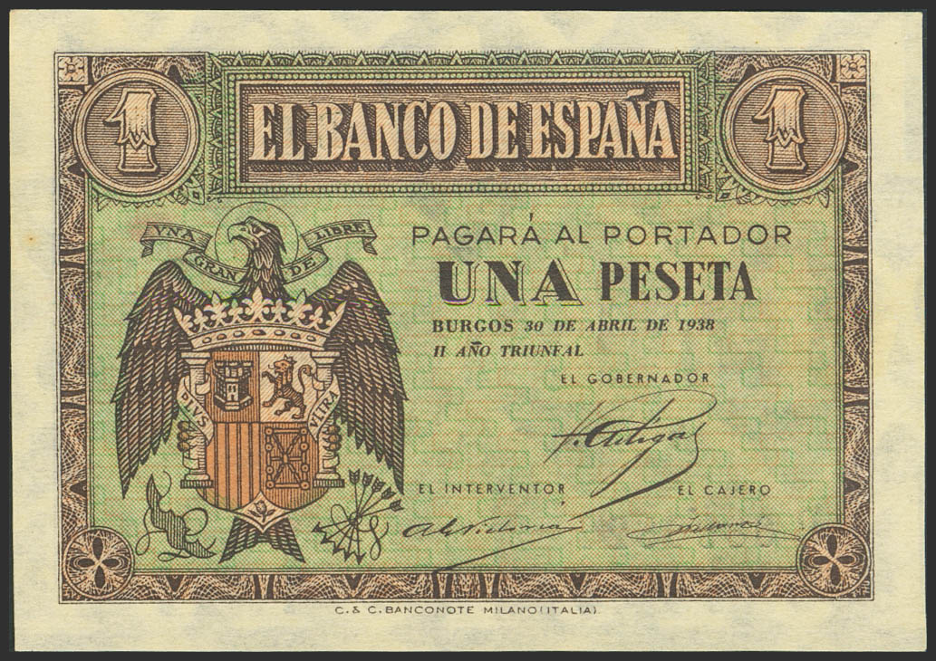 1 Peseta. 30 de Abril de 1938. Serie B. (Edifil 2023: 428a). Apresto original. SC.
