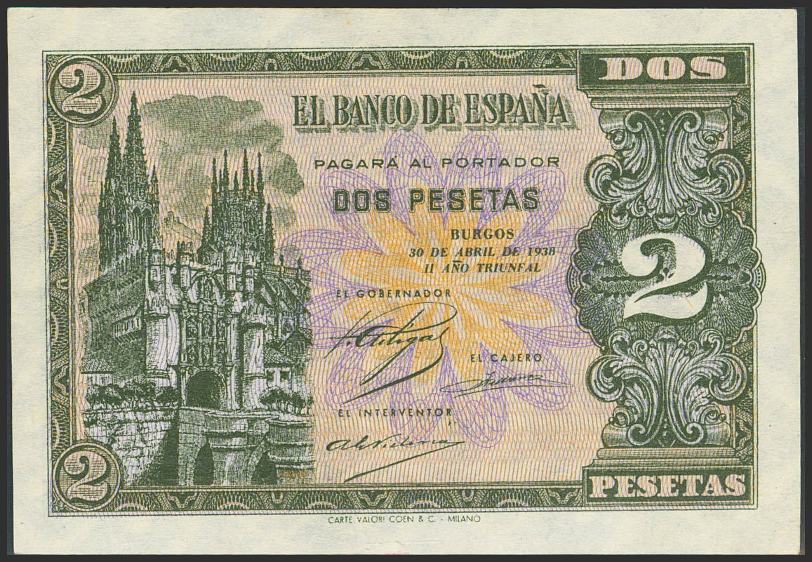 2 Pesetas. 30 de Abril de 1938. Serie E. (Edifil 2023: 429a). Apresto original. SC.