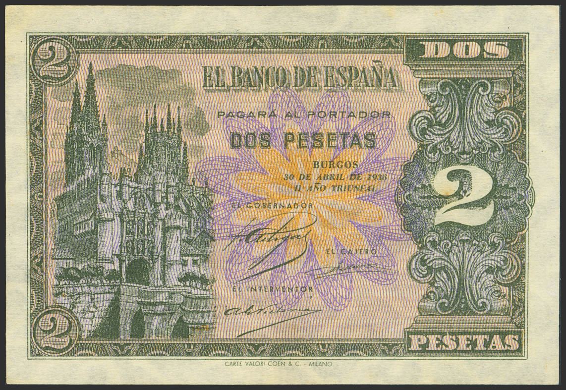 2 Pesetas. 30 de Abril de 1938. Serie G. (Edifil 2023: 429a). Apresto original. SC.