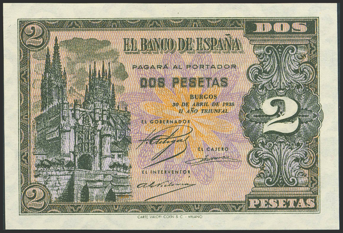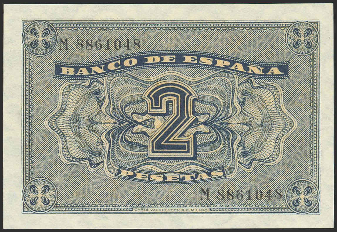 2 Pesetas. 30 de Abril de 1938. Serie M. (Edifil 2023: 429a). Apresto original. SC.