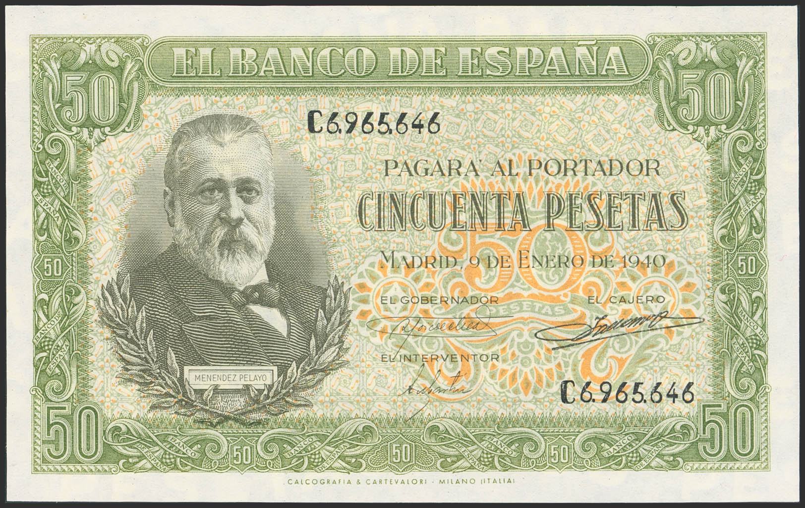 50 Pesetas. 9 de Enero de 1940. Serie C. (Edifil 2023: 437a). Apresto original. SC.