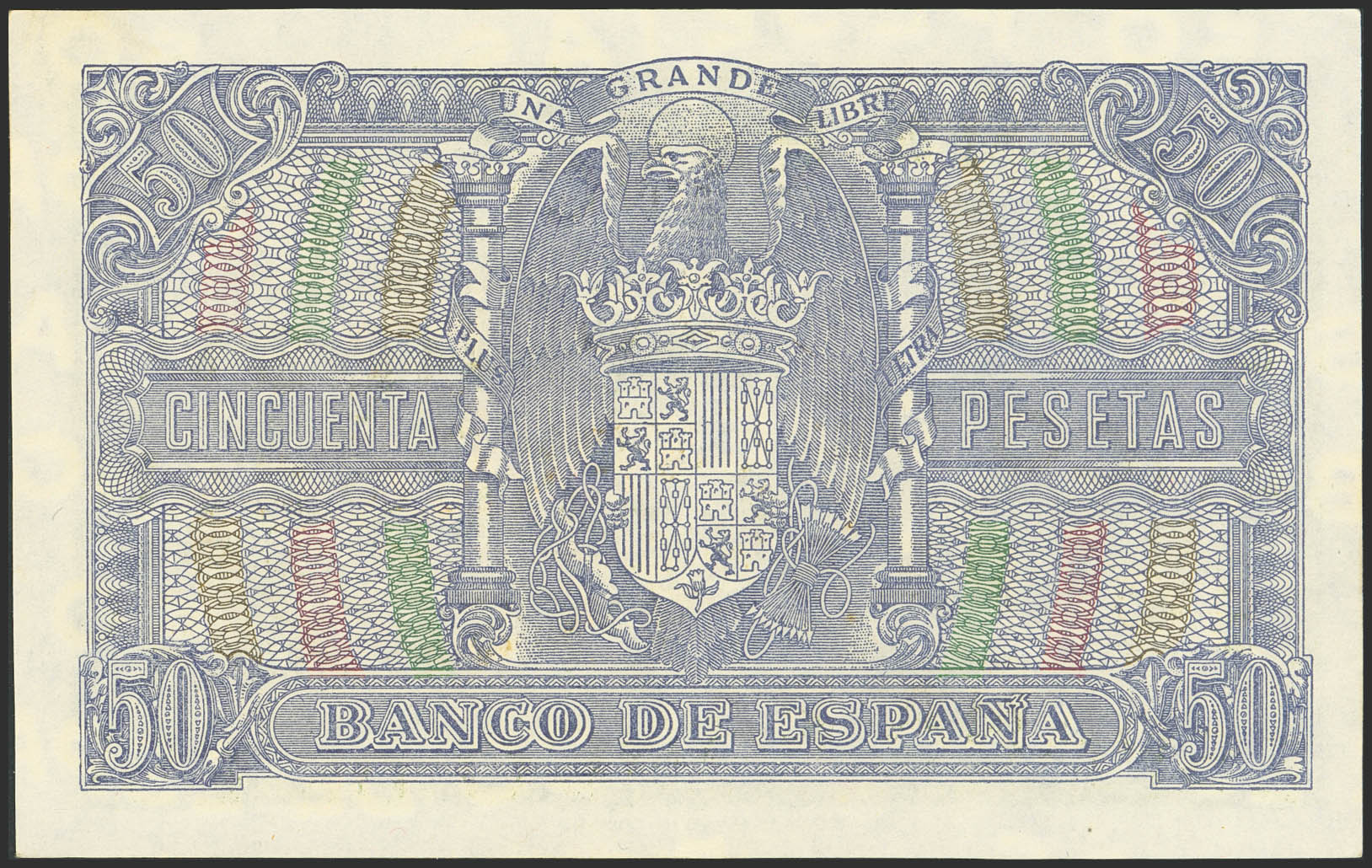 50 Pesetas. 9 de Enero de 1940. Serie D. (Edifil 2023: 437a). Conserva gran parte de su apresto original. EBC+.