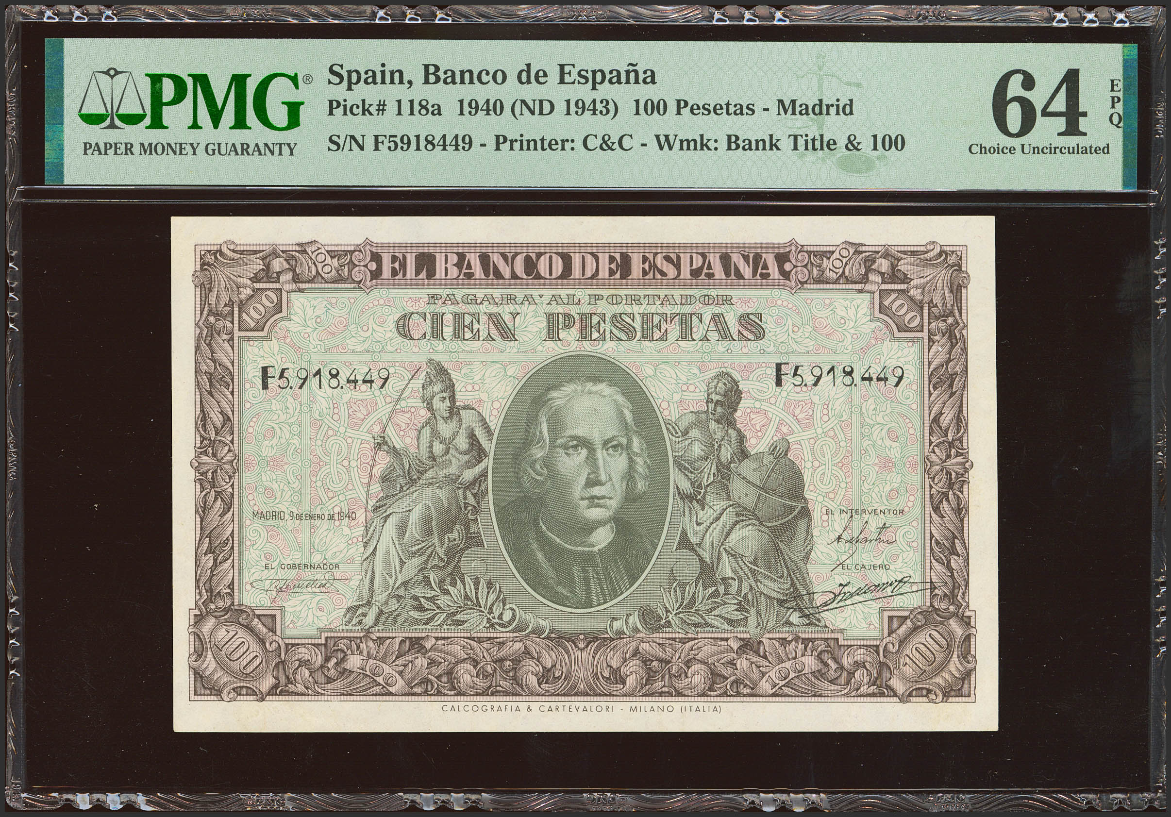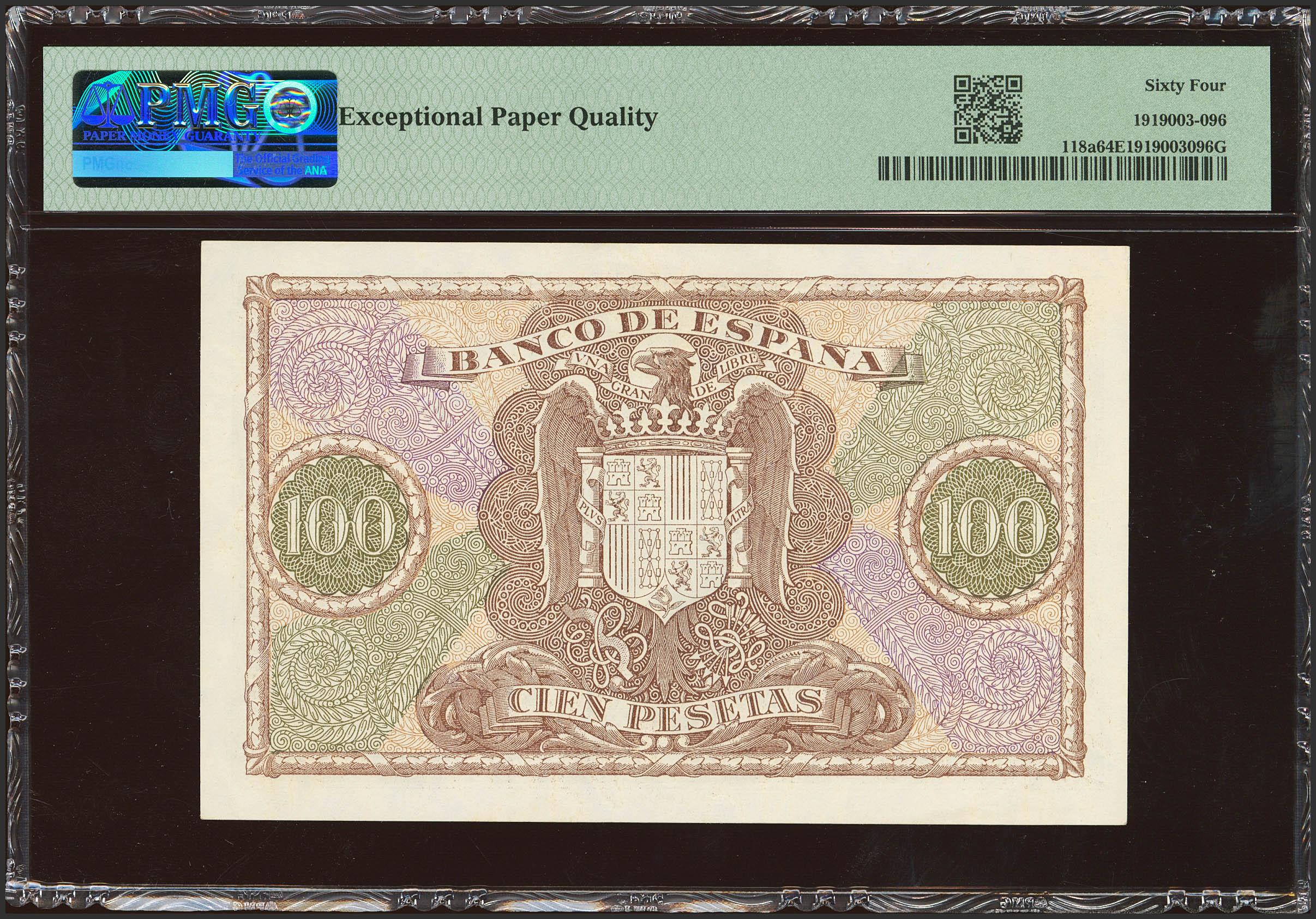 100 Pesetas. 9 de Enero de 1940. Serie F. (Edifil 2023: 438a, Pick: 118a). Apresto original. SC. Encapsulado PMG64EPQ.