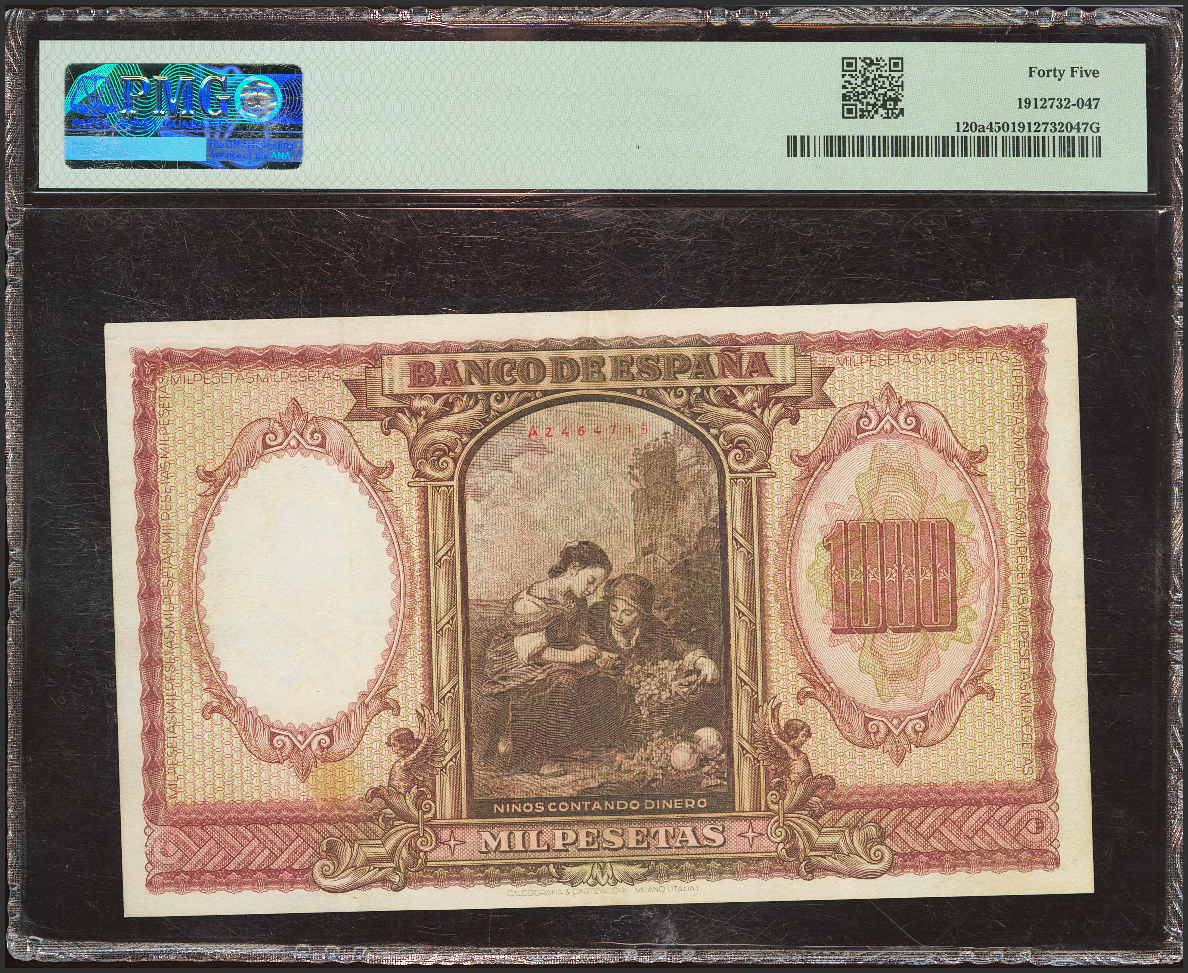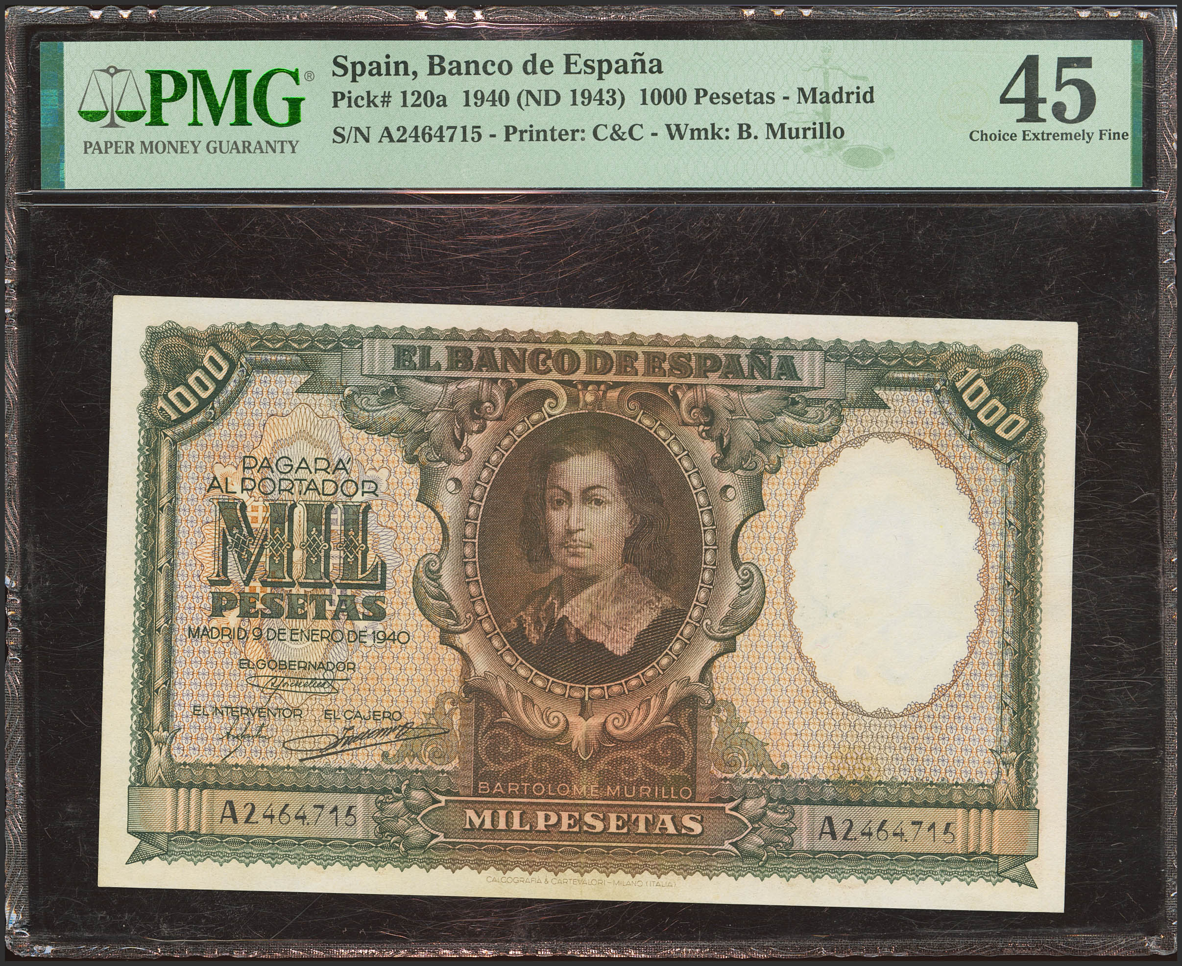 1000 Pesetas. 9 de Enero de 1940. Serie A. (Edifil 2023: 440, Pick: 120a). EBC-. Encapsulado PMG45.