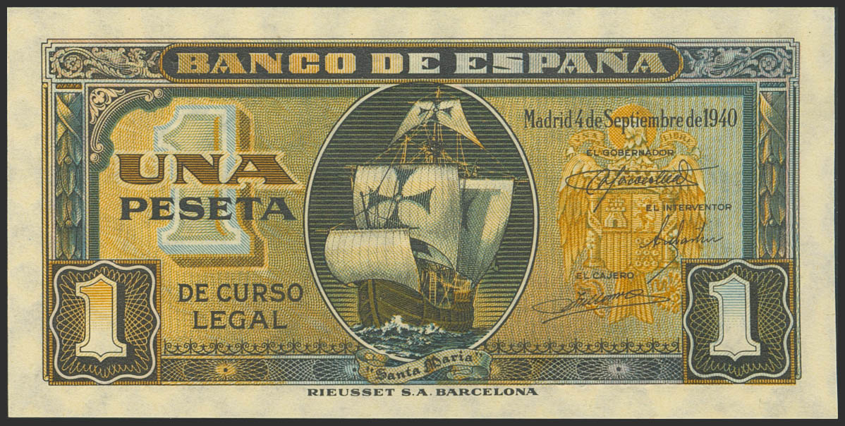 1 Peseta. 4 de Septiembre de 1940. Serie A. (Edifil 2023: 442a). Apresto original. SC.