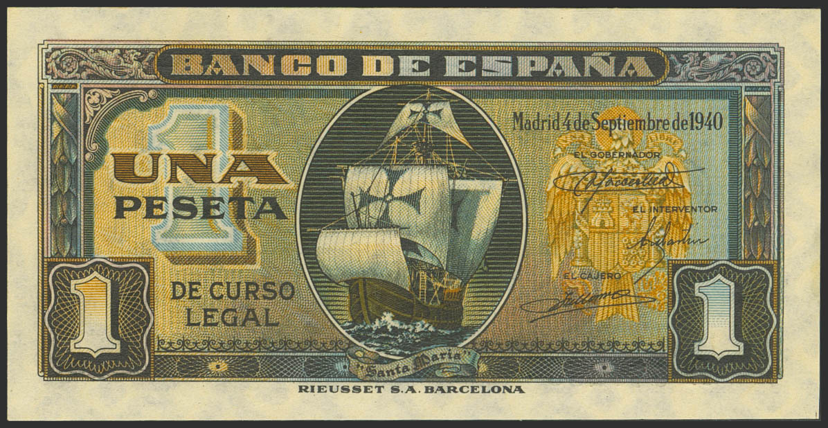 1 Peseta. 4 de Septiembre de 1940. Serie A. (Edifil 2023: 442a). Apresto original. SC--.