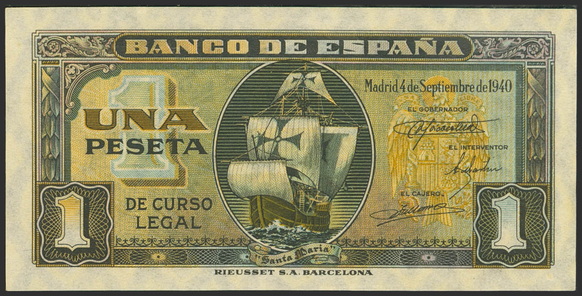 1 Peseta. 4 de Septiembre de 1940. Serie C. (Edifil 2023: 442a). Apresto original. SC.