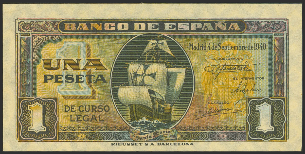 1 Peseta. 4 de Septiembre de 1940. Serie D. (Edifil 2023: 442a). Apresto original. SC-.
