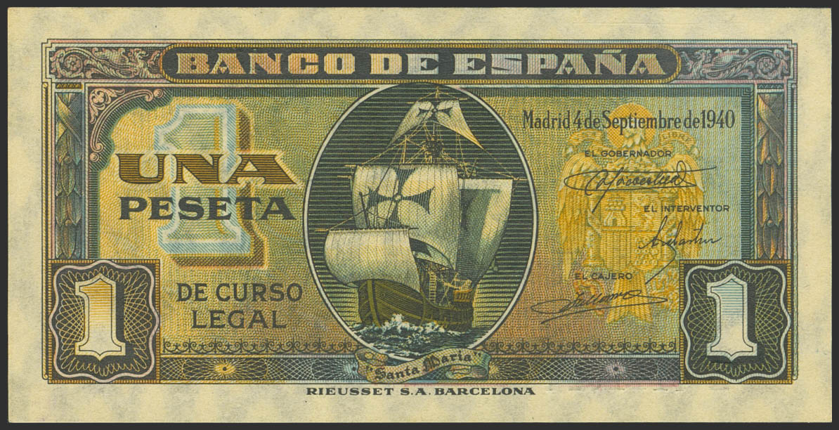 1 Peseta. 4 de Septiembre de 1940. Serie E. (Edifil 2023: 442a). Apresto original. SC.