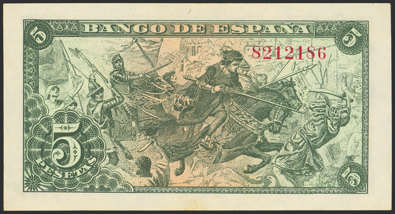 5 Pesetas. 15 de Junio de 1945. Sin serie. (Edifil 2023: 449). Apresto original. EBC+.