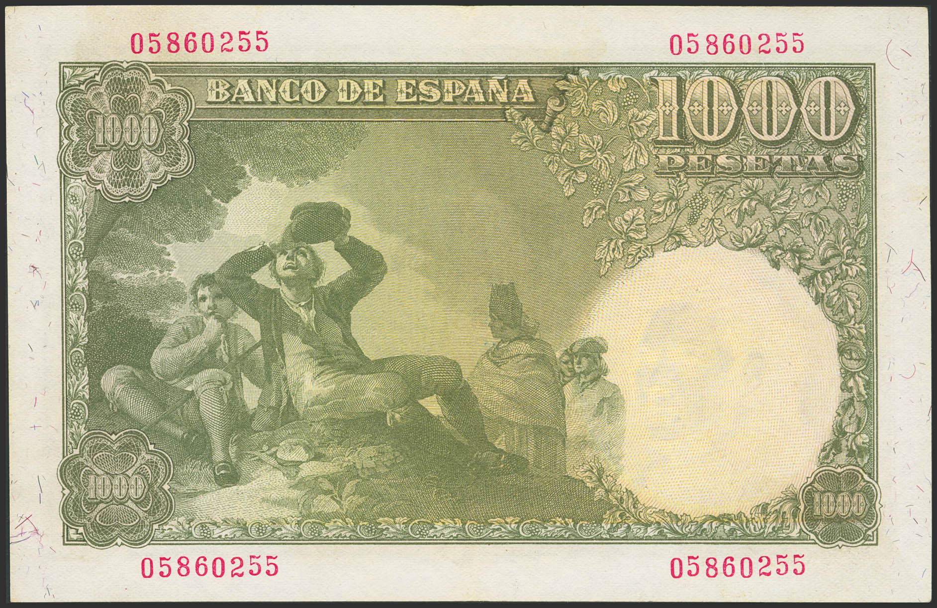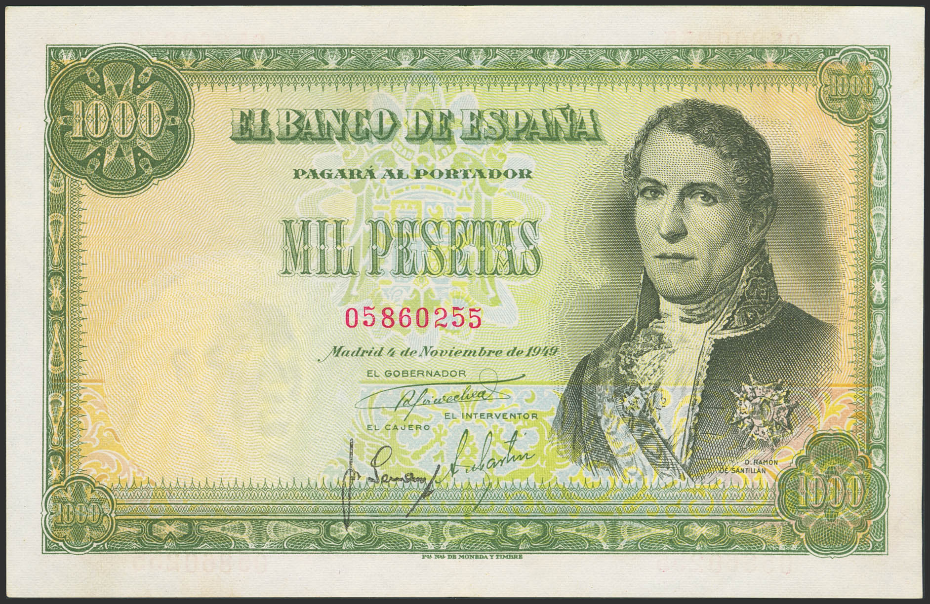 1000 Pesetas. 4 de Noviembre de 1949. Sin serie. (Edifil 2023: 458). Conserva gran parte del apresto original. EBC.