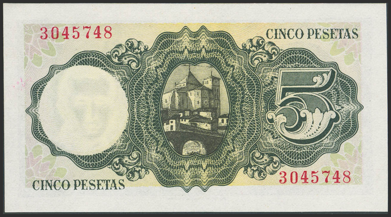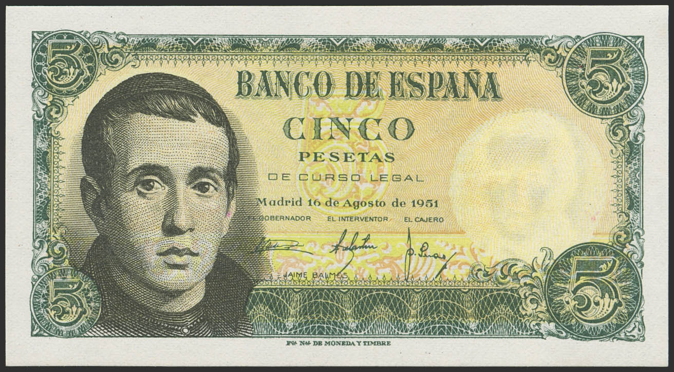 5 Pesetas. 16 de Agosto de 1951. Sin serie. (Edifil 2023: 459). Apresto original. SC.