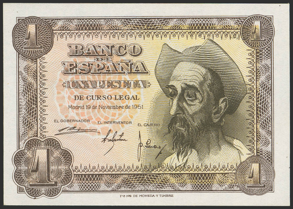 1 Peseta. 19 de Noviembre de 1951. Sin serie. (Edifil 2023: 461). Apresto original. SC.
