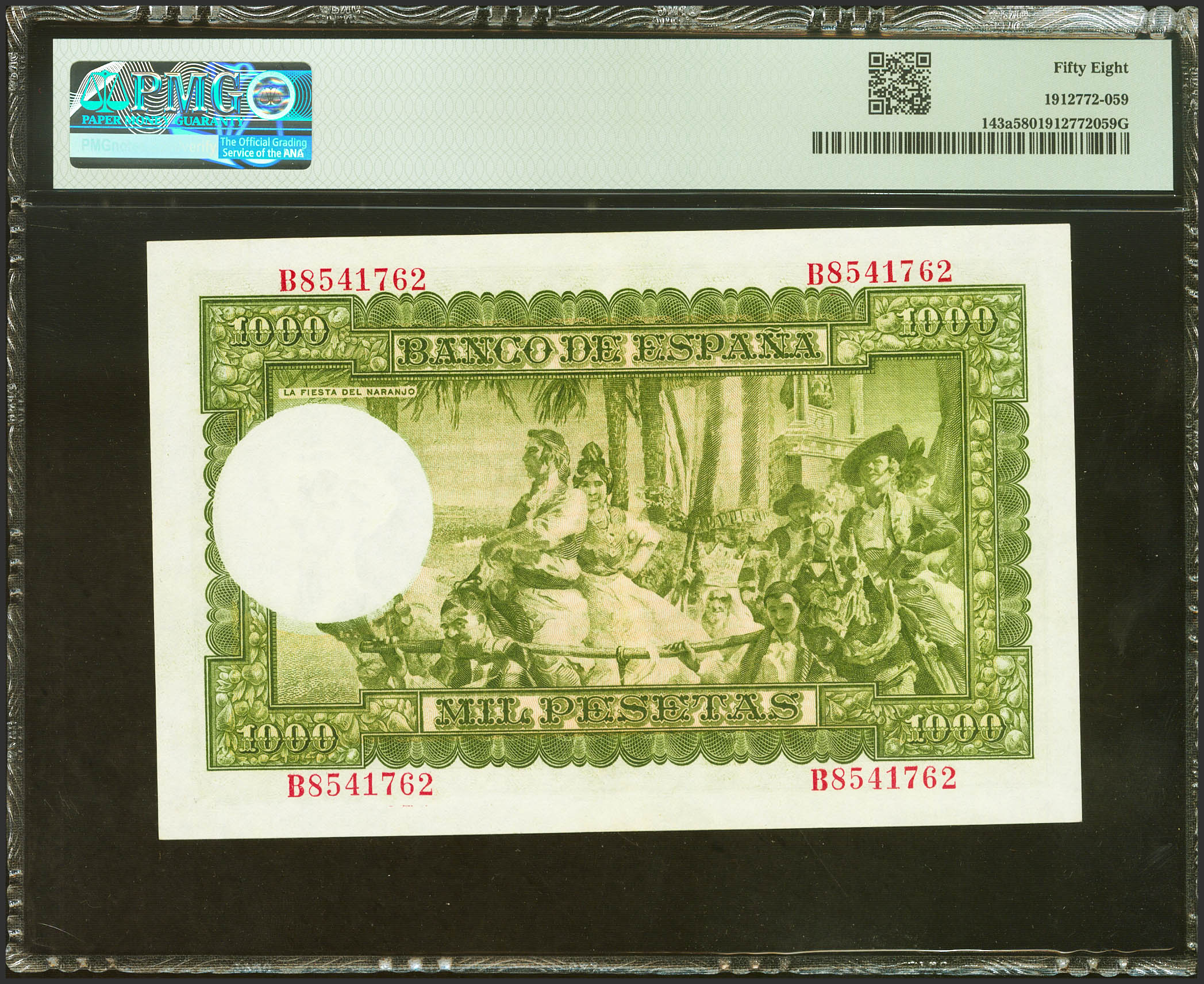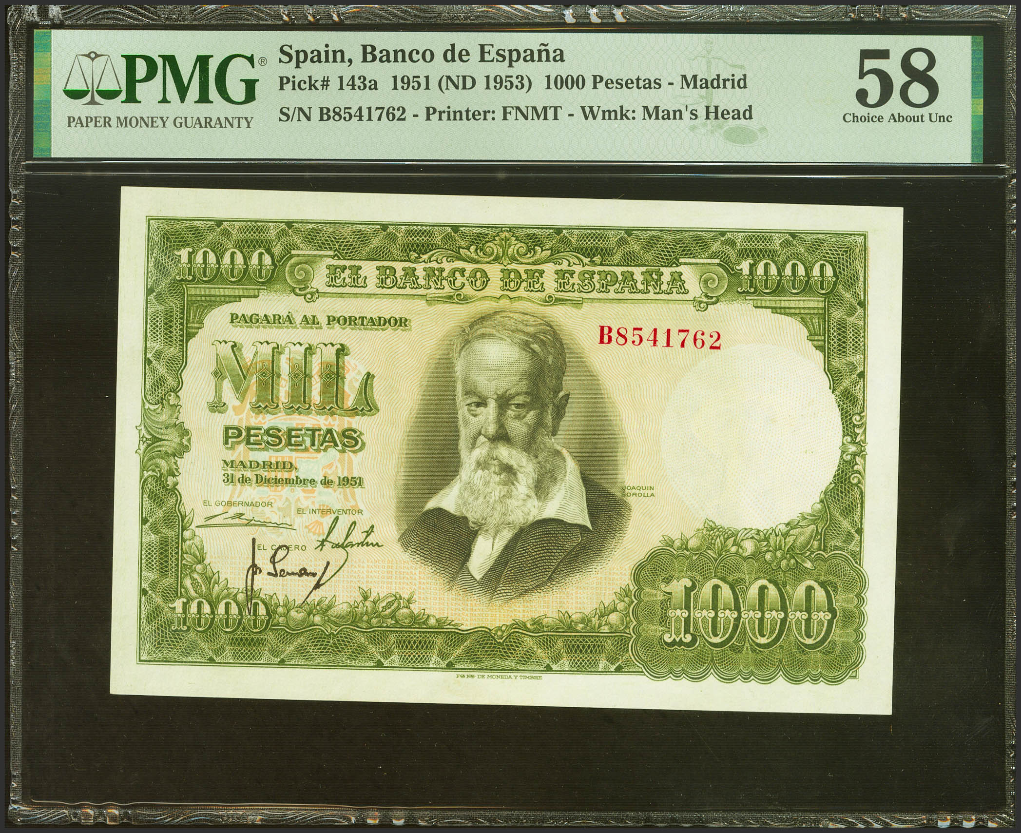 1000 Pesetas. 31 de Diciembre de 1951. Serie B. (Edifil 2021: 463a, Pick: 143a). EBC++. Encapsulado PMG58.