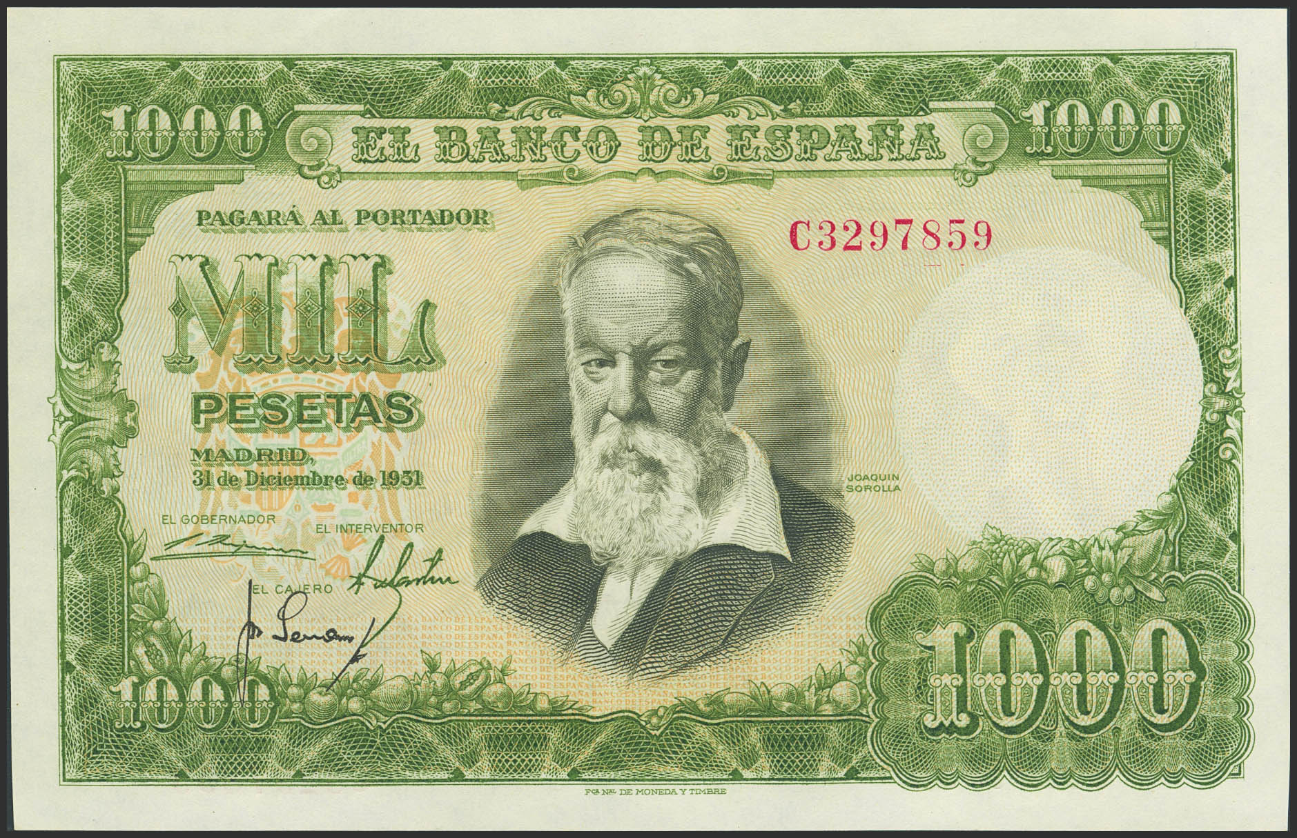 1000 Pesetas. 31 de Diciembre de 1951. Serie C, última serie emitida. (Edifil 2023: 463b). Apresto original. SC-.