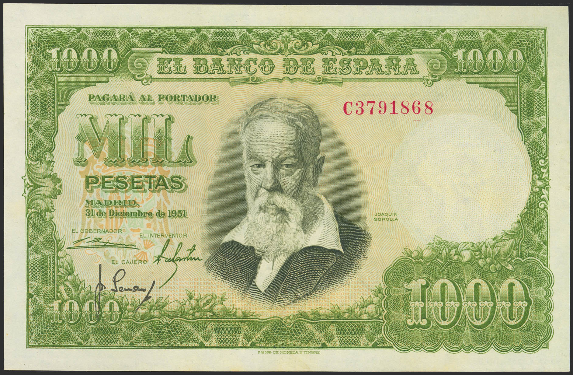 1000 Pesetas. 31 de Diciembre de 1951. Serie C, última serie emitida. (Edifil 2023: 463b). EBC.