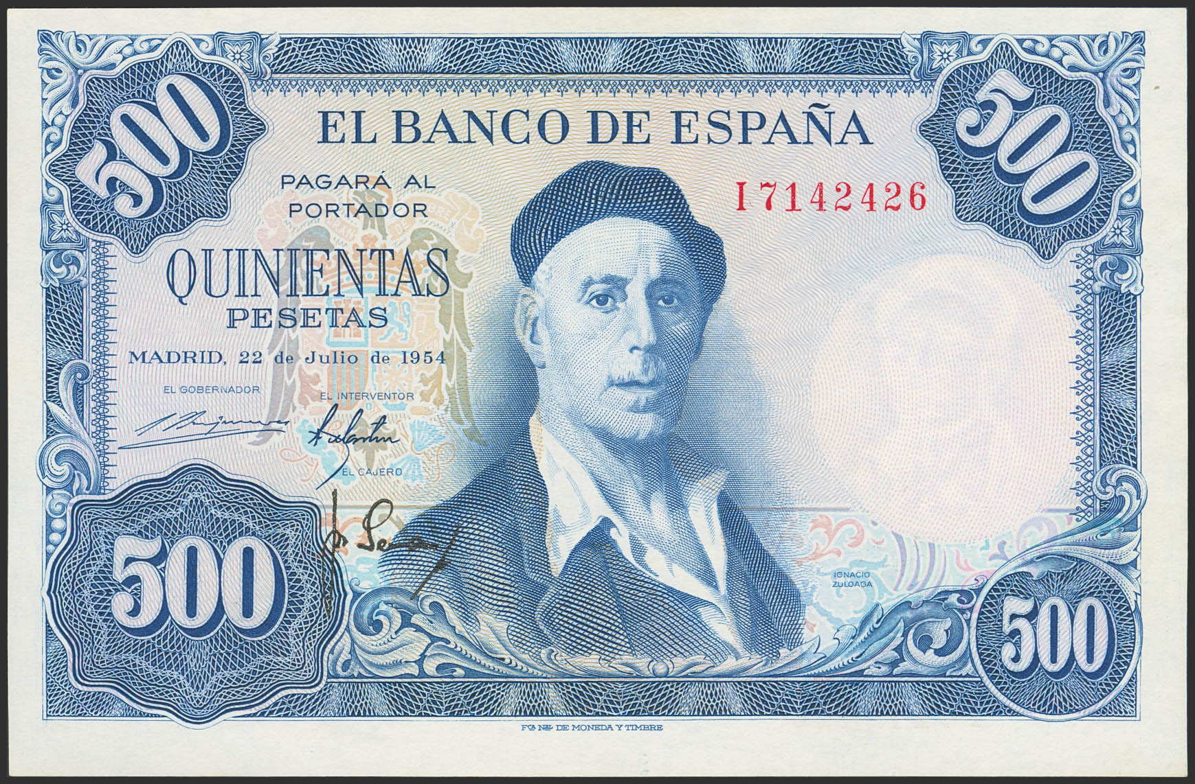 500 Pesetas. 22 de Julio de 1954. Serie I. (Edifil 2023: 468b). Apresto original. EBC+++.