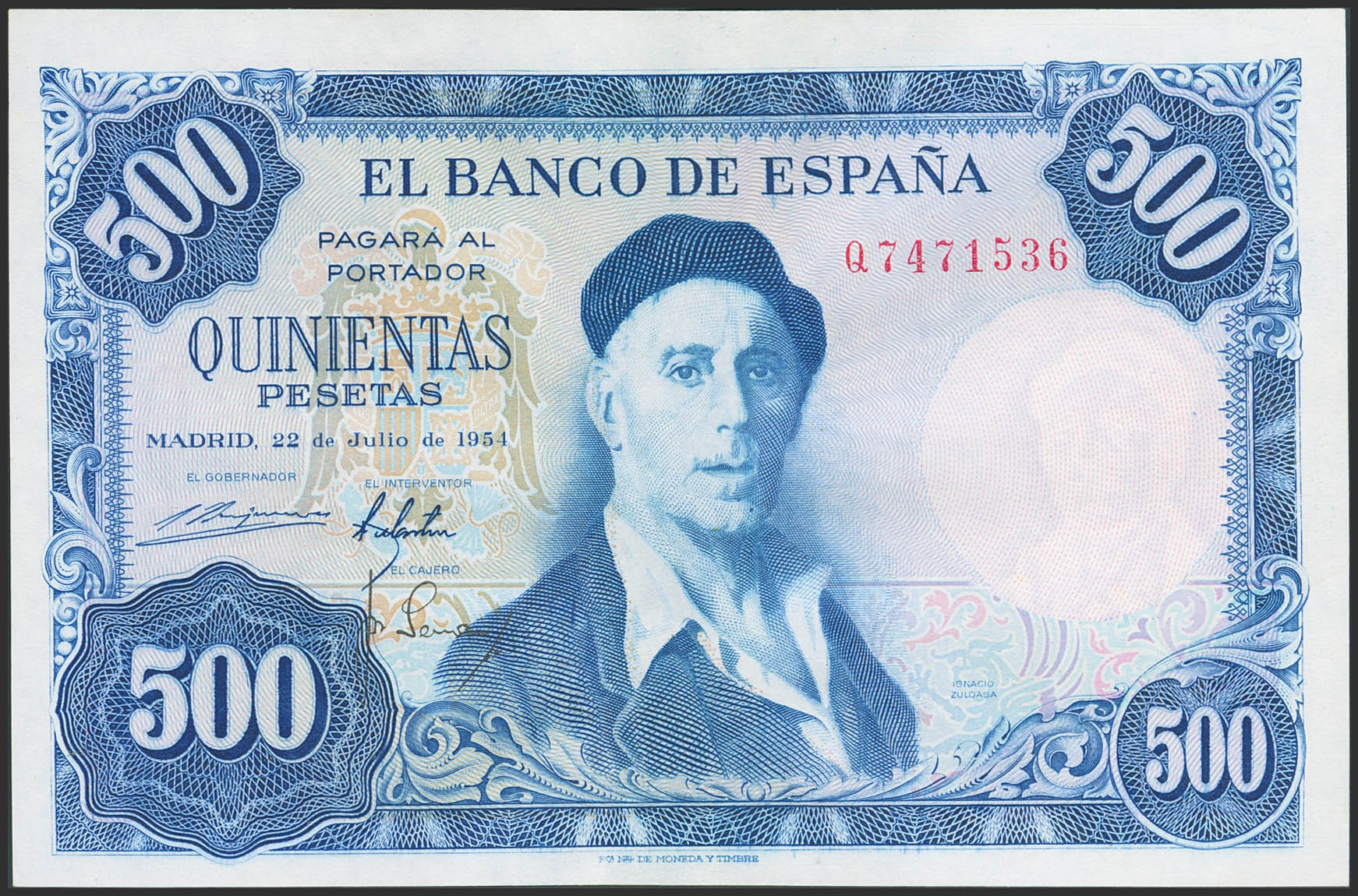 500 Pesetas. 22 de Julio de 1954. Serie Q. (Edifil 2023: 468b). Apresto original. SC--.