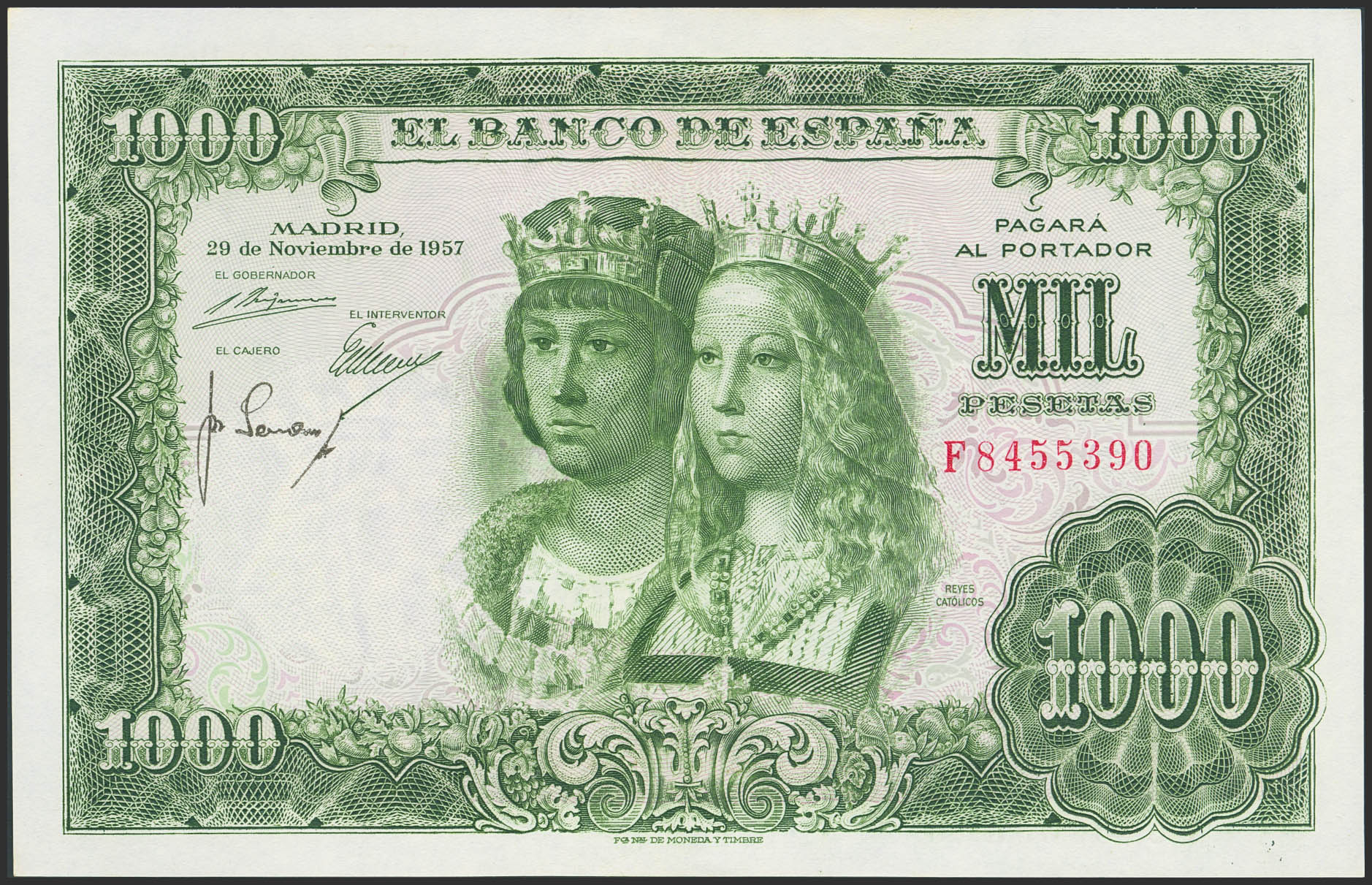 1000 Pesetas. 29 de Noviembre de 1957. Serie F. (Edifil 2023: 469b). Apresto original. SC--.