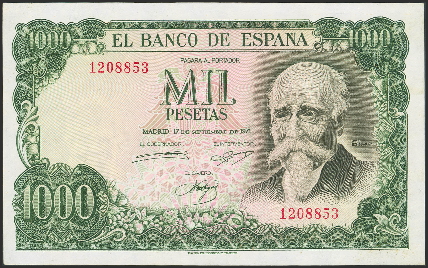 1000 Pesetas. 17 de Septiembre de 1971. Sin serie. (Edifil 2023: 474). SC--.
