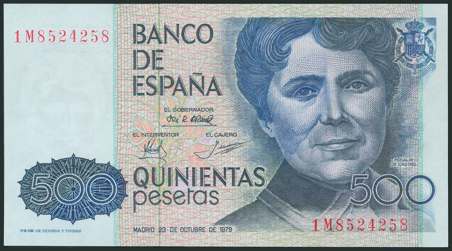 500 Pesetas. 23 de Octubre de 1979. Serie 1M y numeración capicúa. (Edifil 2017: 476a). SC.