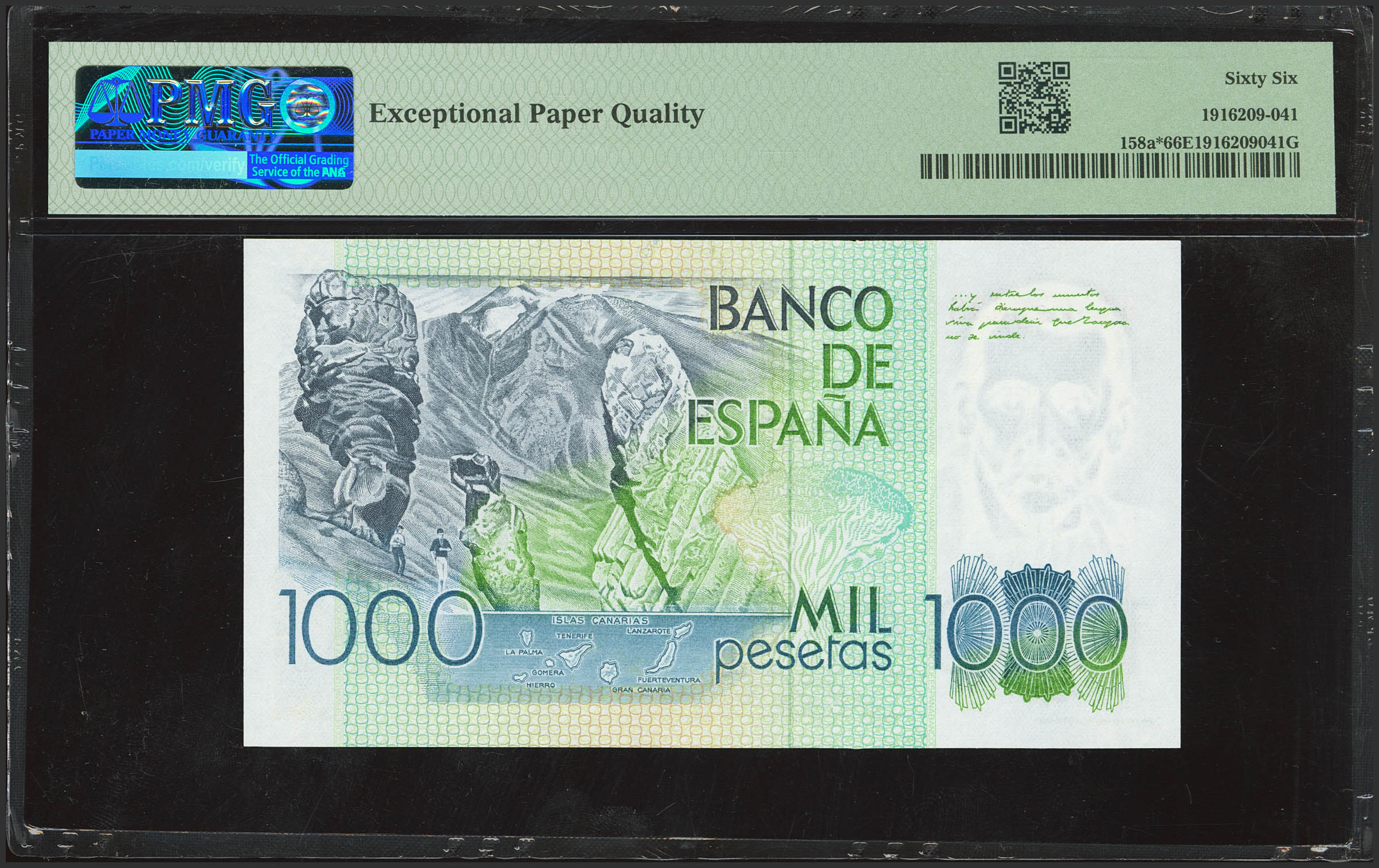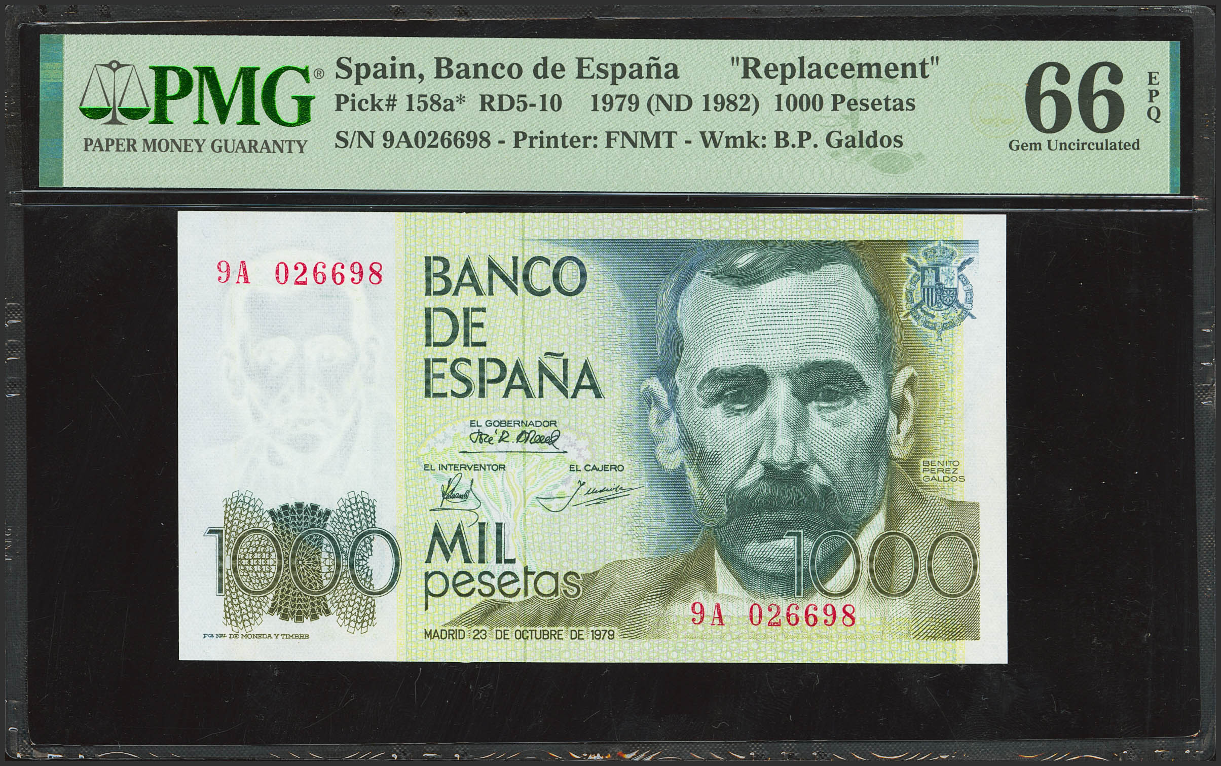 1000 Pesetas. 23 de Octubre de 1979. Serie especial 9A. (Edifil 2023: 477b, Pick: 158*). SC. Encapsulado PMG66EPQ.