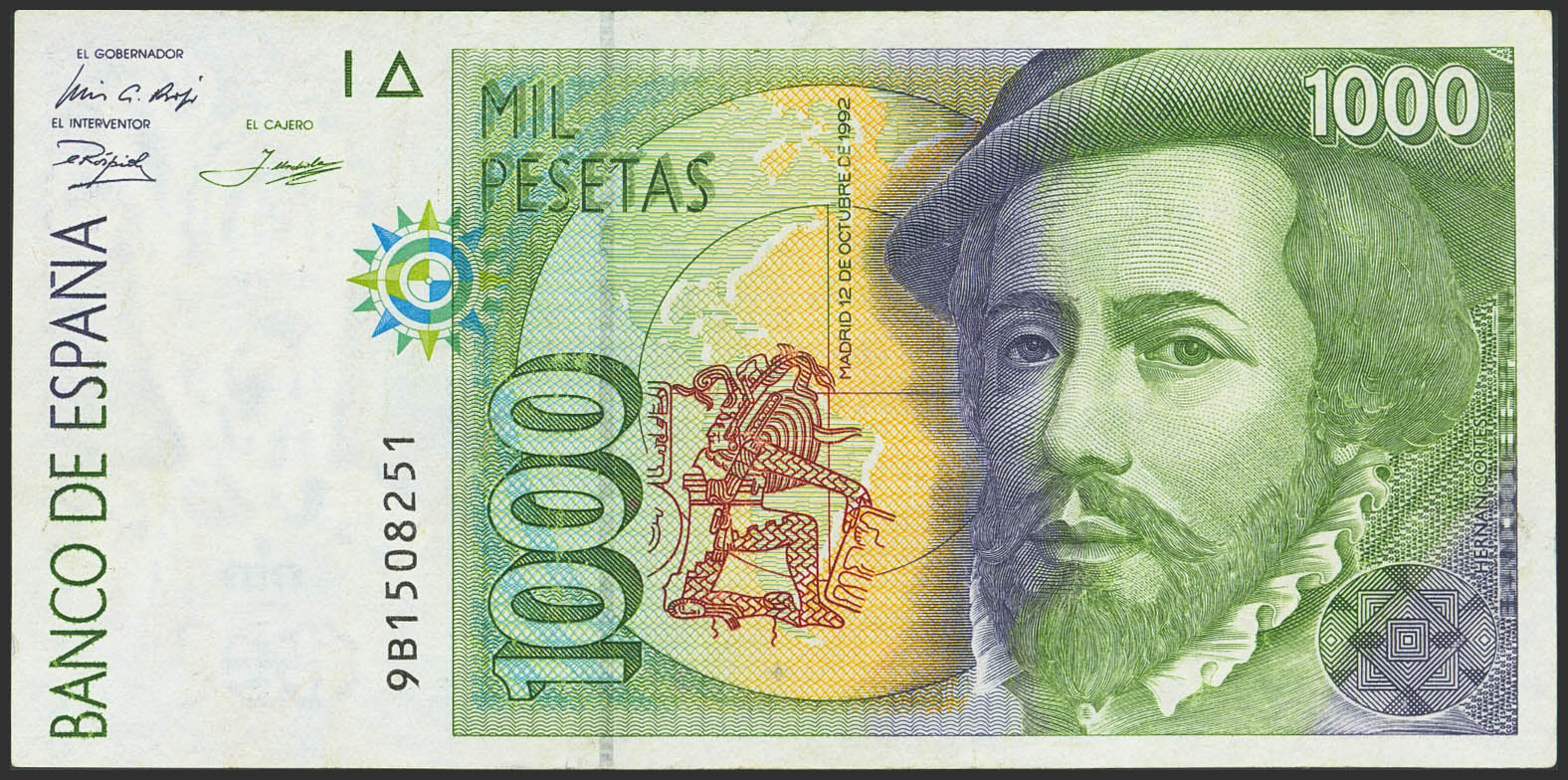 1000 Pesetas. 12 de Octubre de 1992. Serie especial 9B. (Edifil 2023: 483d). EBC+++.