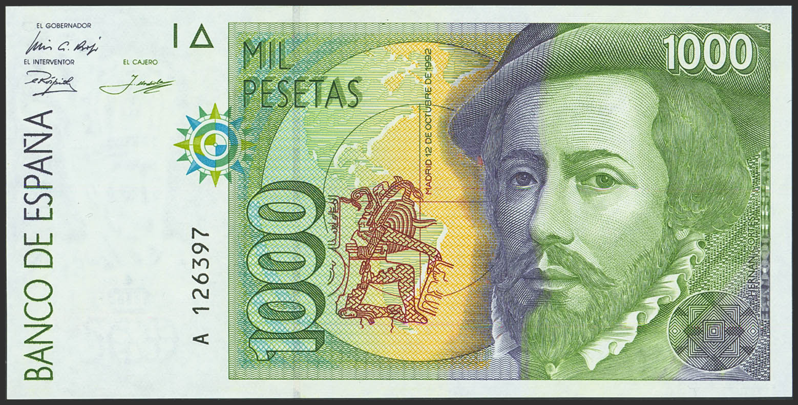 1000 Pesetas. 12 de Octubre de 1992. Serie A. (Edifil 2023: 483a). SC.