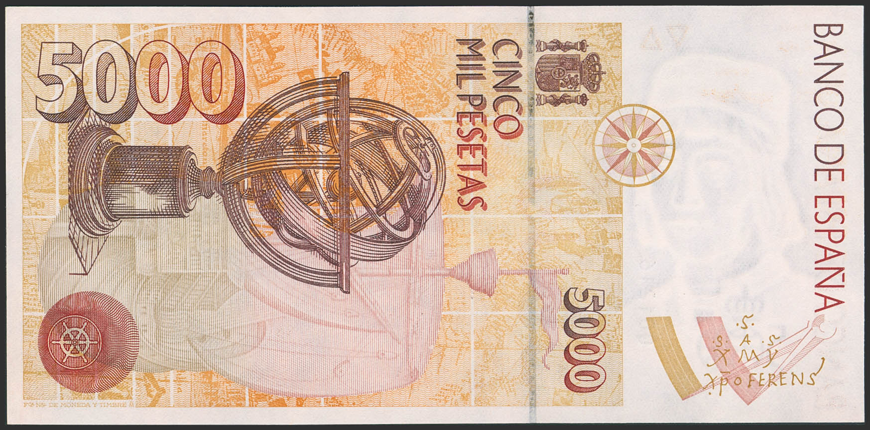5000 Pesetas. 12 de Octubre de 1992. Sin serie y numeración muy baja. (Edifil 2023: 484). SC.