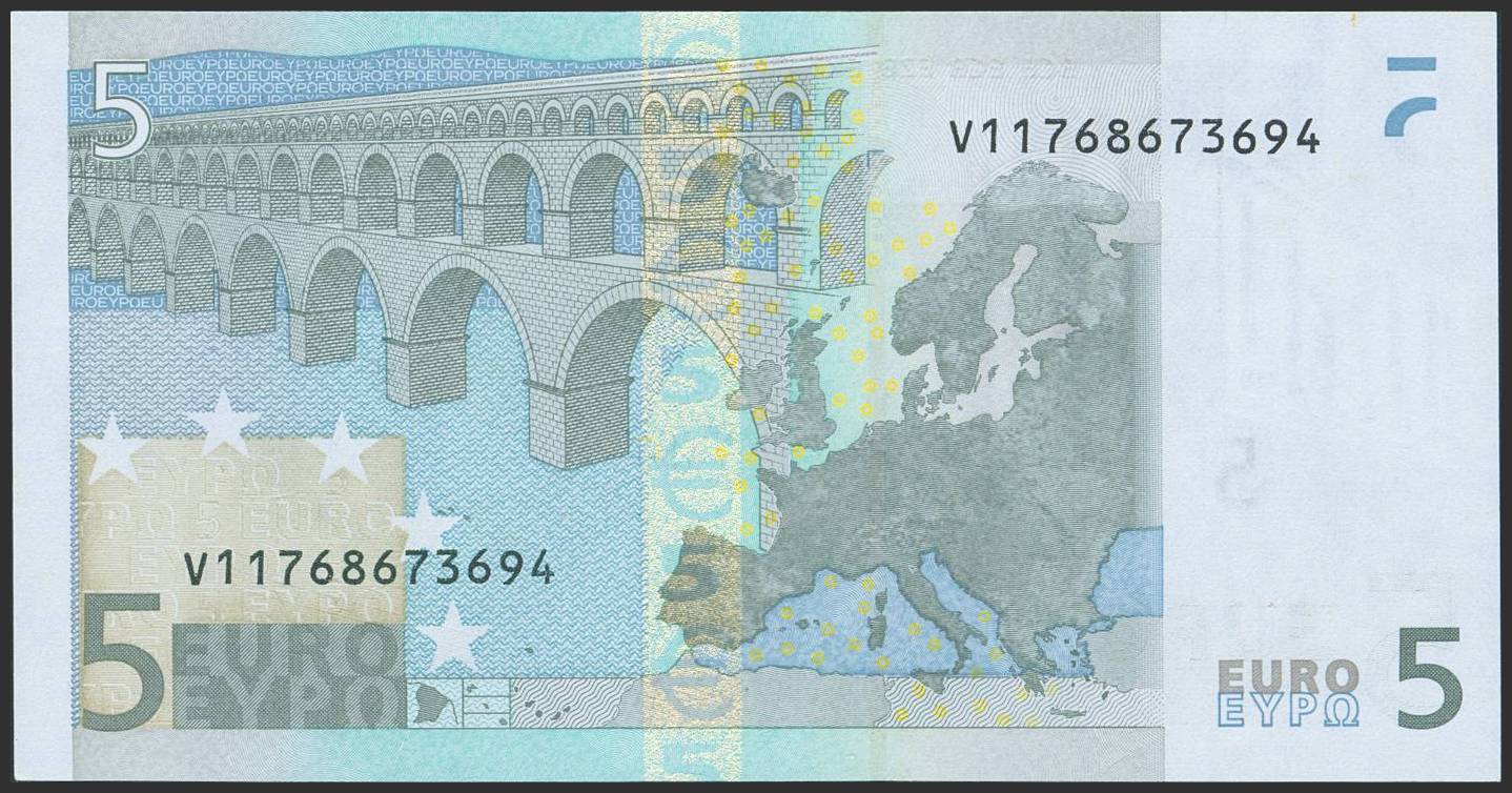 5 Euros. 1 de Enero de 2002. Firma Trichet. Serie V (España). (Edifil 2023: 486A). SC.
