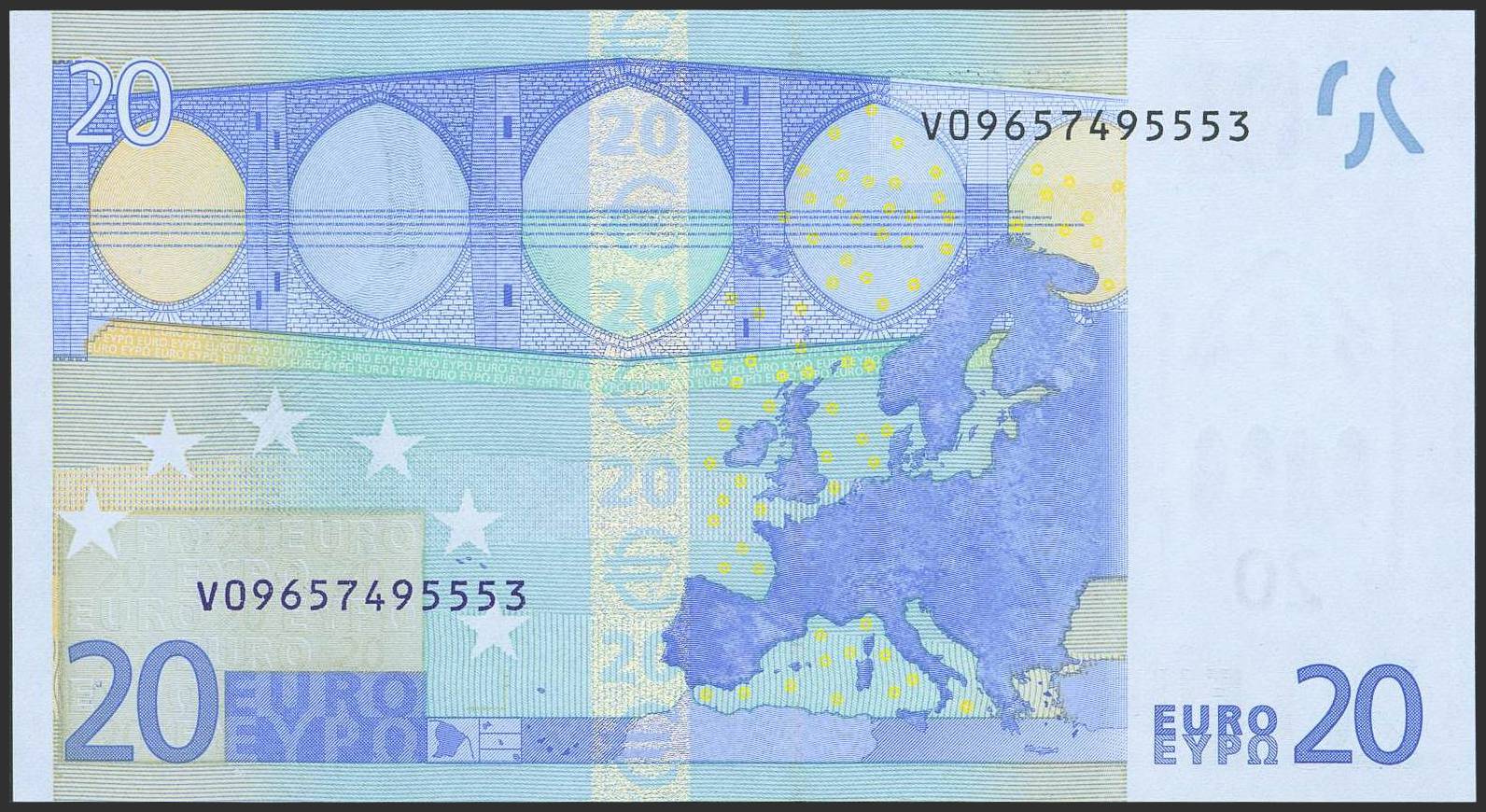 20 Euros. 1 de Enero de 2002. Firma Duisenberg. Serie V (España). (Edifil 2023: 488). SC.