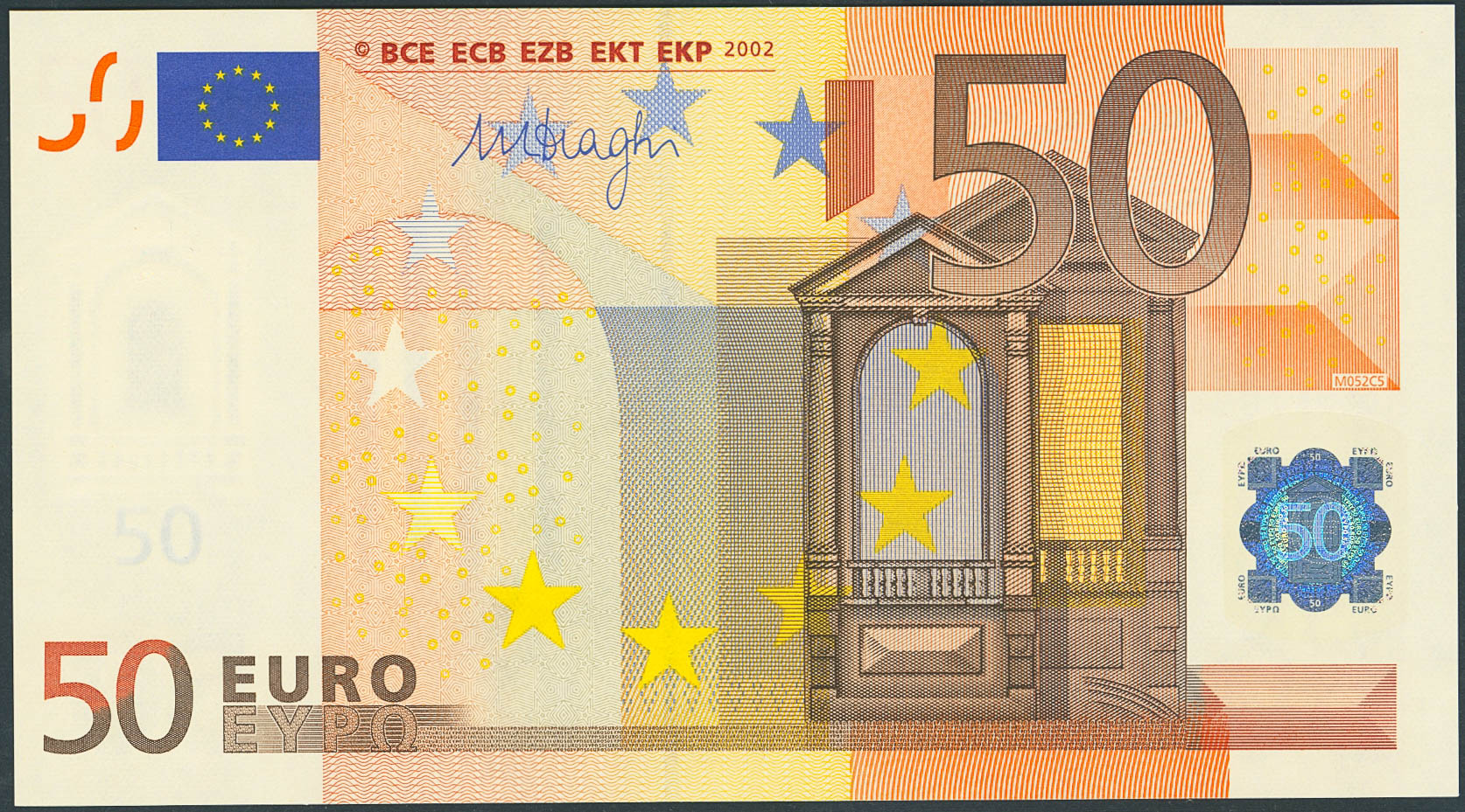 50 Euros. 1 de Enero de 2002. Firma Draghi. Serie V (España). (Edifil 2023: 489B). SC-.