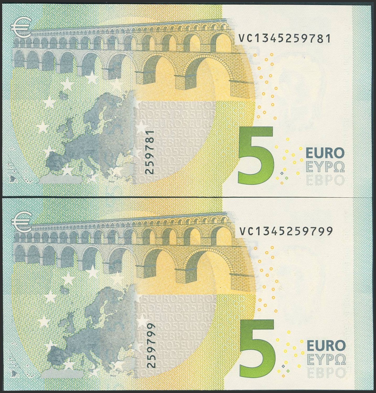 5 Euros. Noviembre 2019. Pareja correlativa. Firma Lagarde. Serie VC (España). (Edifil 2023: 493Aa). SC.