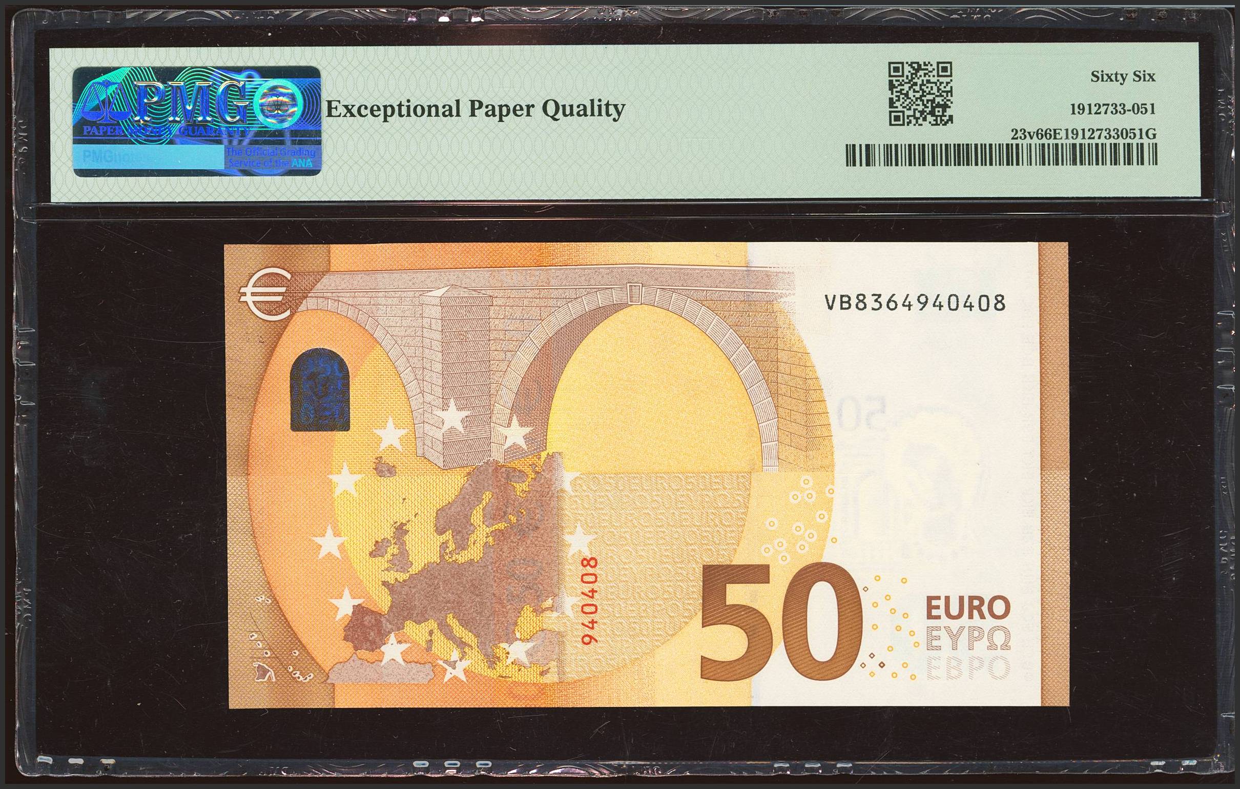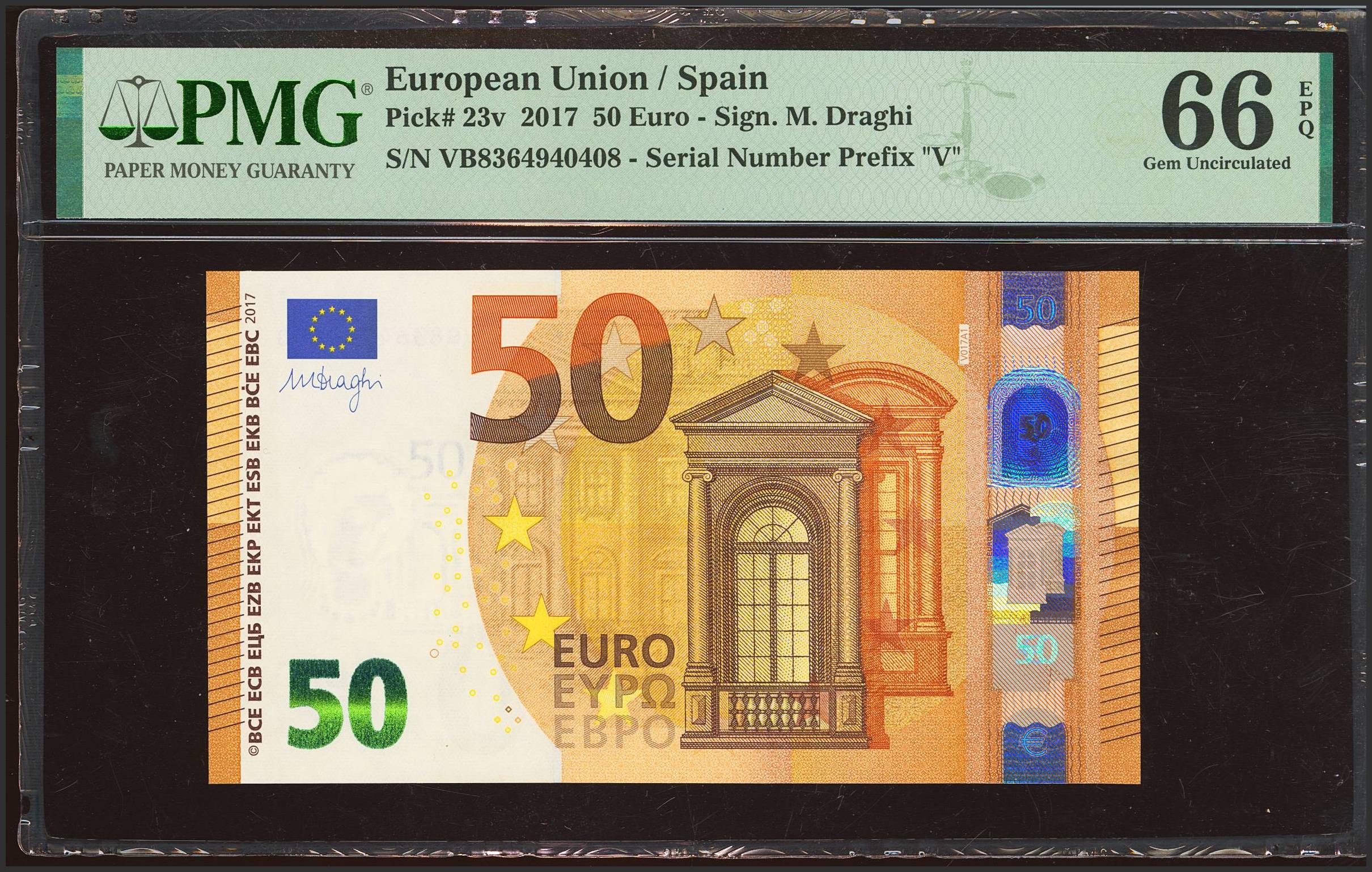 50 Euros. 4 de Abril de 2017. Firma Draghi. Serie VB (España). (Edifil 2023: 496a, Pick: 23v). SC. Encapsulado PMG66EPQ.