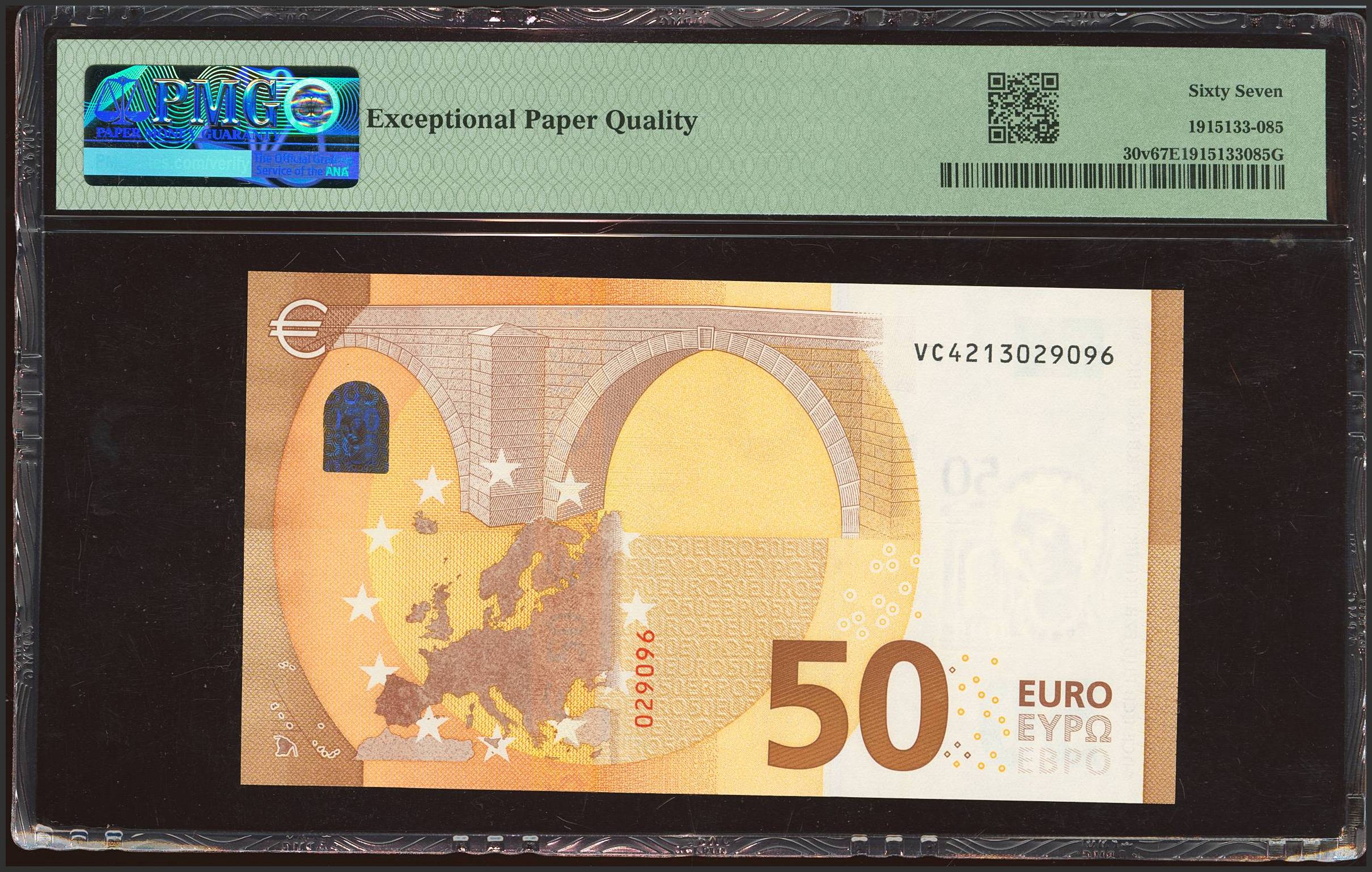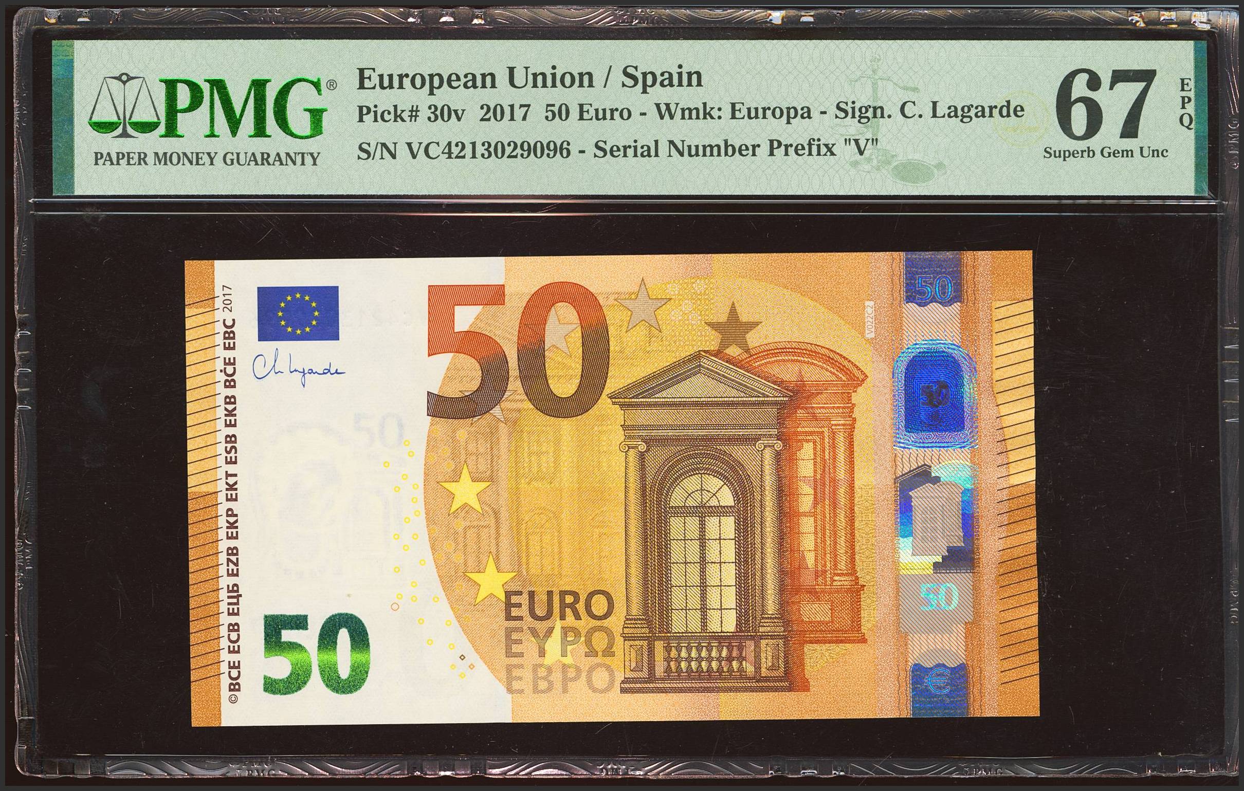 50 Euros. 4 de Abril de 2017. Firma Lagarde. Serie VC (España). (Edifil 2023: 496Aa). SC. Encapsulado PMG67EPQ