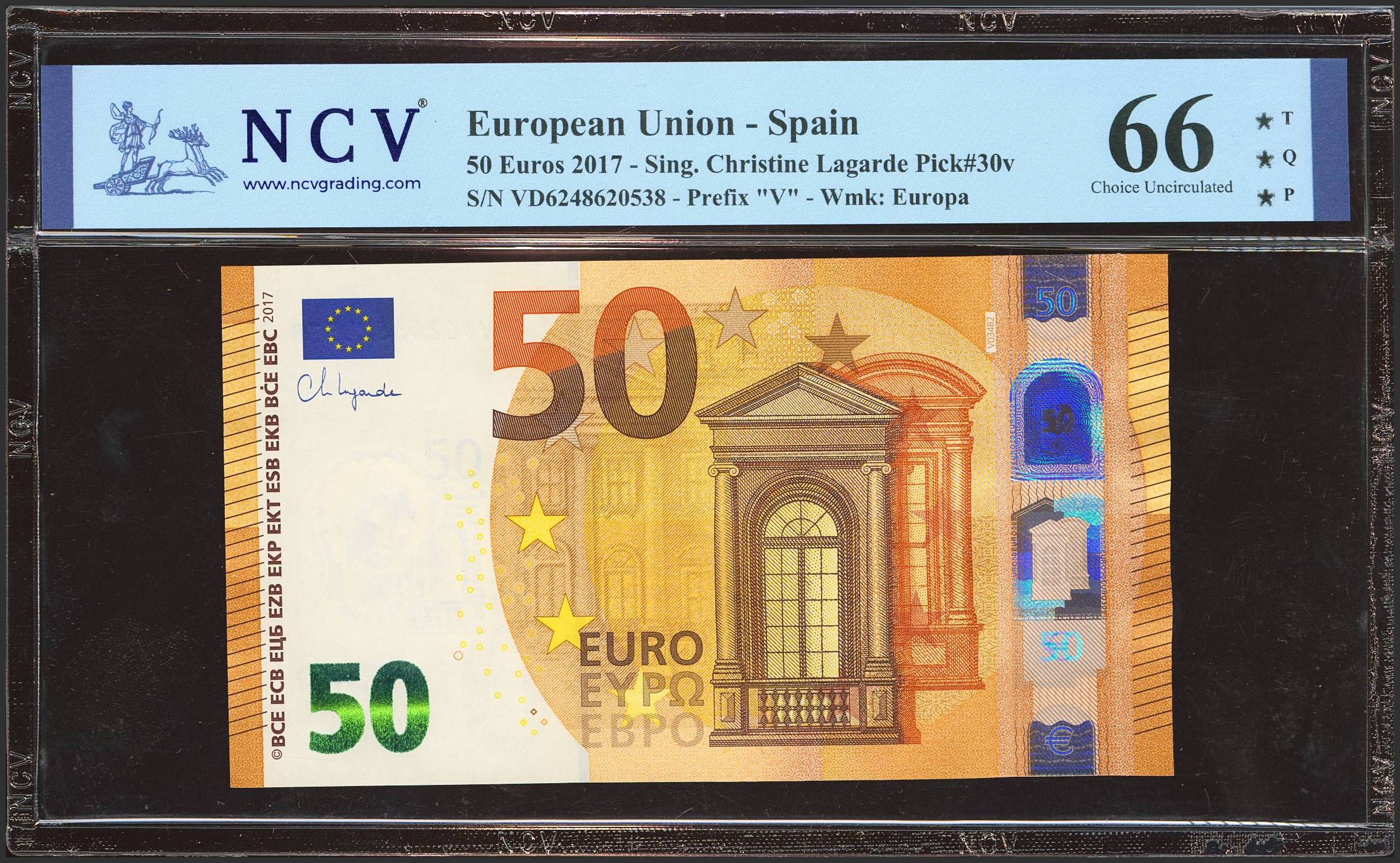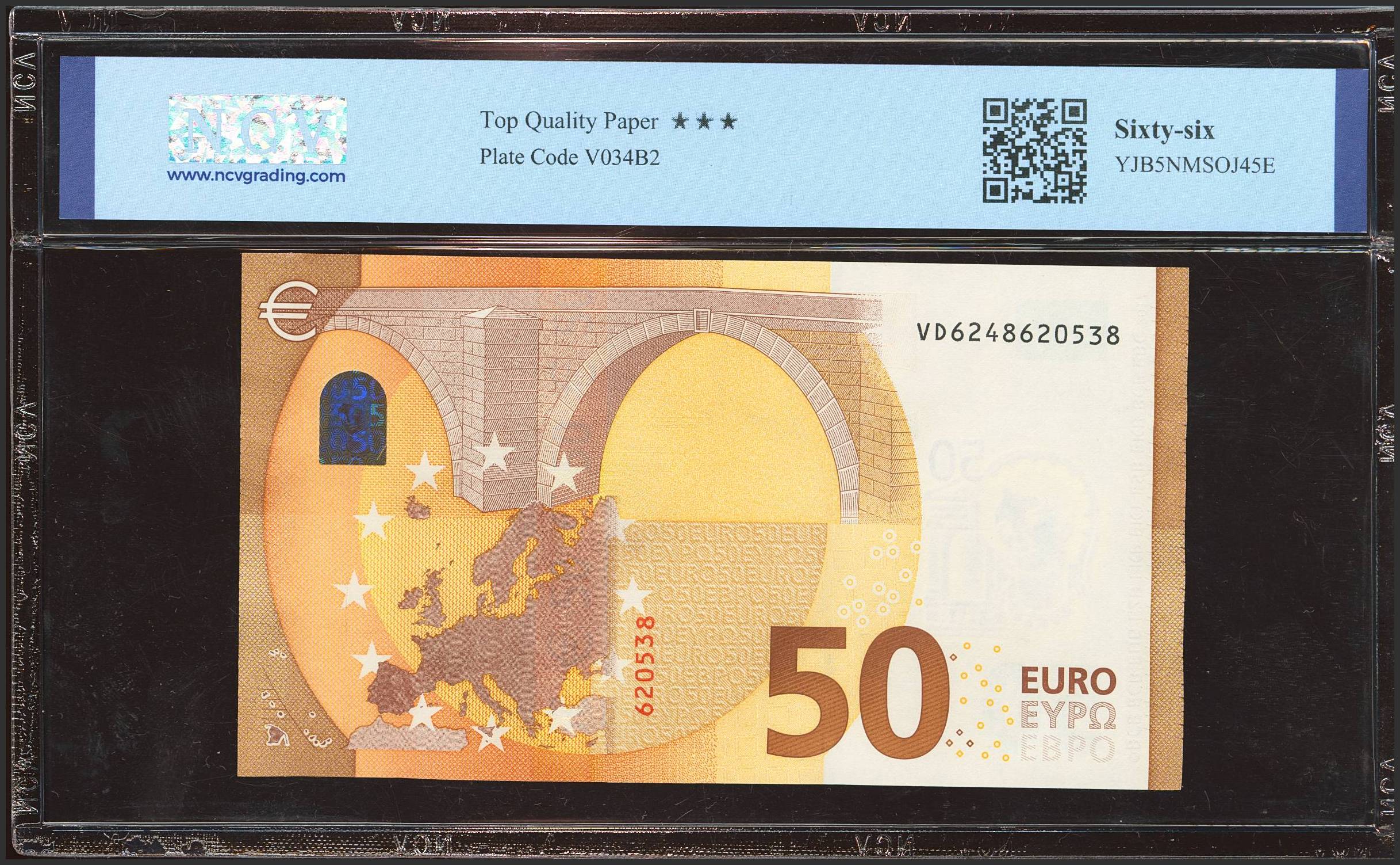 50 Euros. 4 de Abril de 2017. Firma Lagarde. Serie VD. (Edifil 2023: 496Ab, Pick: 30V). SC. Encapsulado NCV66TQP.