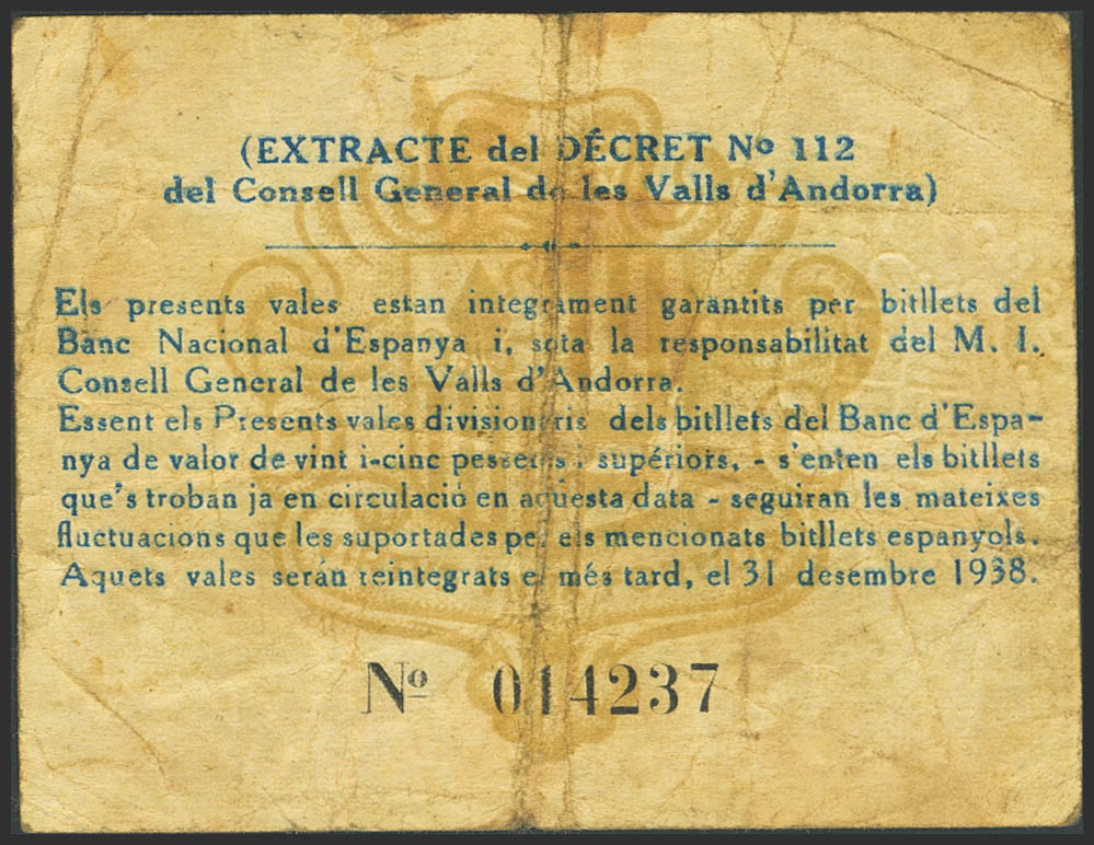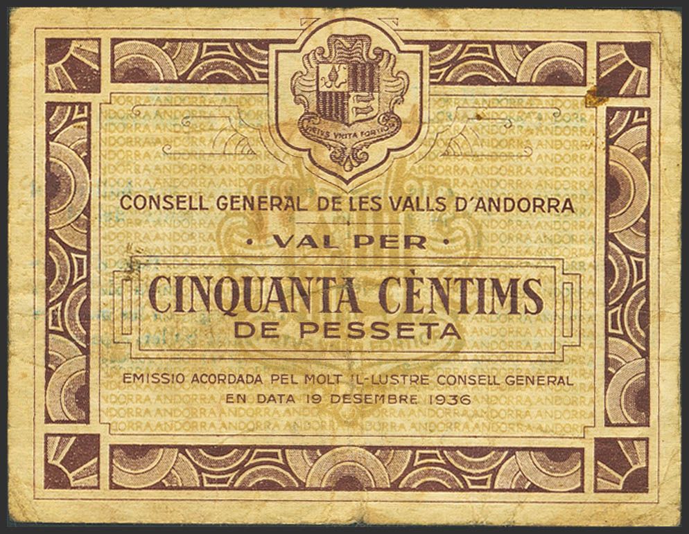 ANDORRA. 50 Centims. 19 de Diciembre de 1936. Sin serie. (Edifil 2023: 1). MBC-.