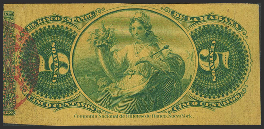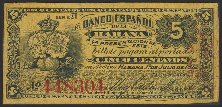 BANCO ESPAÑOL DE LA HABANA. 5 Centavos. 1 de Julio de 1872. Serie H. (Edifil 2023: 41). Apresto original. EBC-.