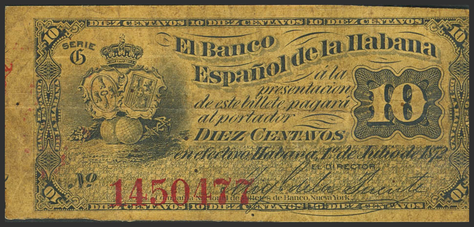BANCO ESPAÑOL DE LA HABANA. 50 Centavos. 1 de Julio de 1872. Serie G. (Edifil 2023: 44). BC+.