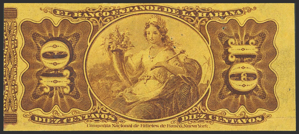 BANCO ESPAÑOL DE LA HABANA. 10 Centavos. 15 de Mayo de 1876. Serie G. (Edifil 2023: 45). Muy raro, especialmente en esta calidad, apresto original y puntitos de aguja. SC-.