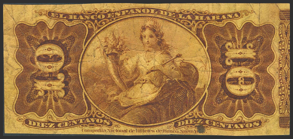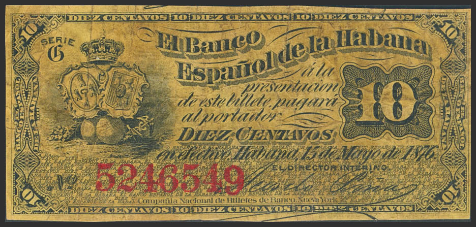 BANCO ESPAÑOL DE LA HABANA. 10 Centavos. 15 de Mayo de 1876. Serie G. (Edifil 2023: 45). MBC-.