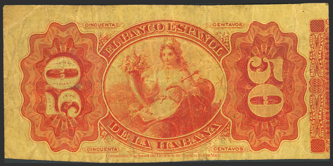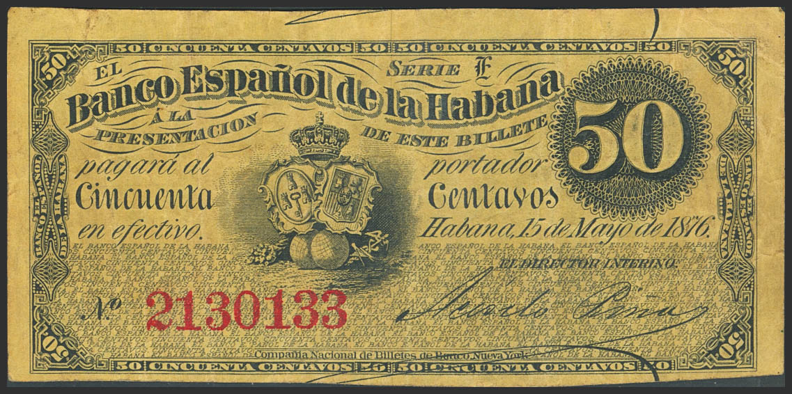 BANCO ESPAÑOL DE LA HABANA. 50 Centavos. 15 de Mayo de 1876. Serie E. (Edifil 2023: 50). MBC-.